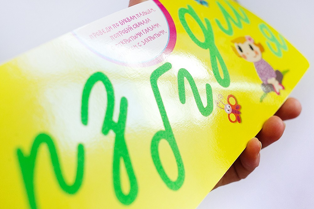 • Страницы с объемными буквами для лучшего восприятия информации.