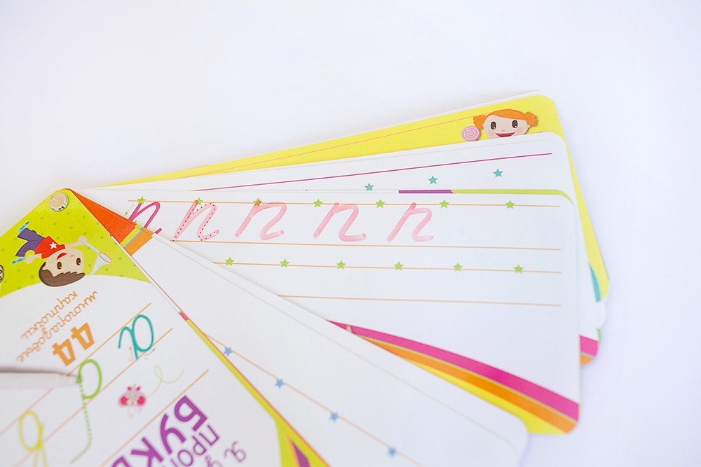 • От 40 до 44 многоразовых карточек для тренировки письма