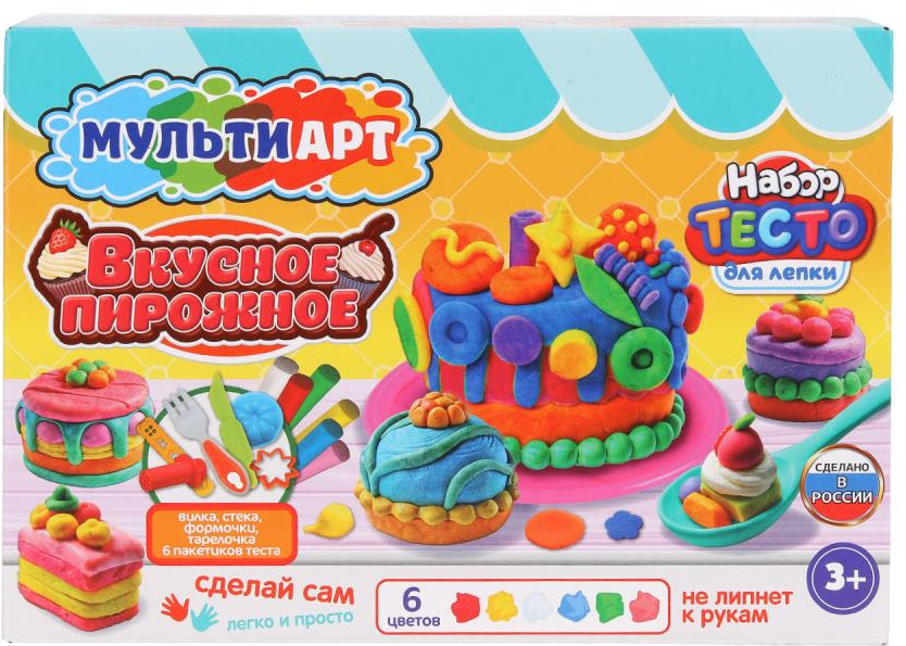 💳 Оплатить за товар можно при получении 🇰🇿 Есть бесплатная доставка по Казахстану от 1 дня 🎁 Копите бонусы с каждой покупки Набор с тестом для лепки и формочками «Вкусное пирожное» ТМ «Мульти Арт» — отличный вариант для развития творческих способностей ребёнка: |