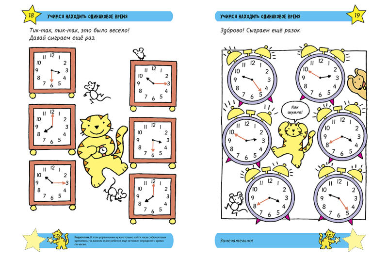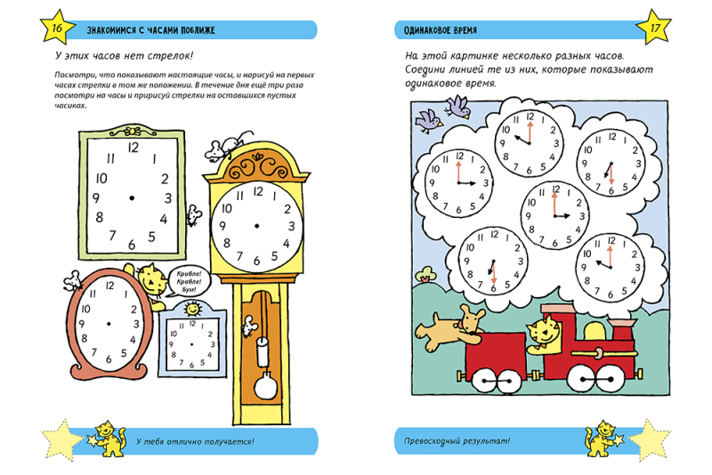 Ребёнку нравиться книжка, занимается с удовольствием. Для начального понятия о времени подойдёт, но чтоб научить разбираться сколько часов, нужно самим побольше заниматься. Книга даёт лишь общие понятия.