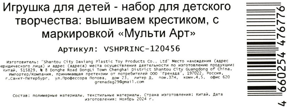 💳 Оплатить за товар можно при получении 🇰🇿 Есть бесплатная доставка по Казахстану от 1 дня 🎁 Копите бонусы с каждой покупки Серия: Сказочная мастерская Набор для творчества — вышивка крестиком «Снежная принцесса» из серии «Сказочная мастерская» ТМ «Мульти Арт» — отличный подарок для девочки, который будет способствовать развитию её творческих способностей. При помощи этого набора, маленькая рукодельница сможет создать красивую вышивку изображением очаровательной принцессы. Яркую поделку можно подарить близким или использовать для украшения комнаты. Творческие занятия с вышивкой крестиком ТМ «Мульти Арт» обладают успокаивающим действием, а также развивают: мелкую моторику, творческое мышление, воображение, усидчивость, внимание и аккуратность. |