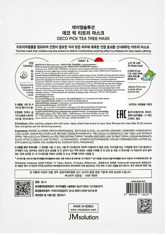 JMsolution Маска для лица тканевая увлажняющая с чайным деревом «Deco pick Tea Tree mask»