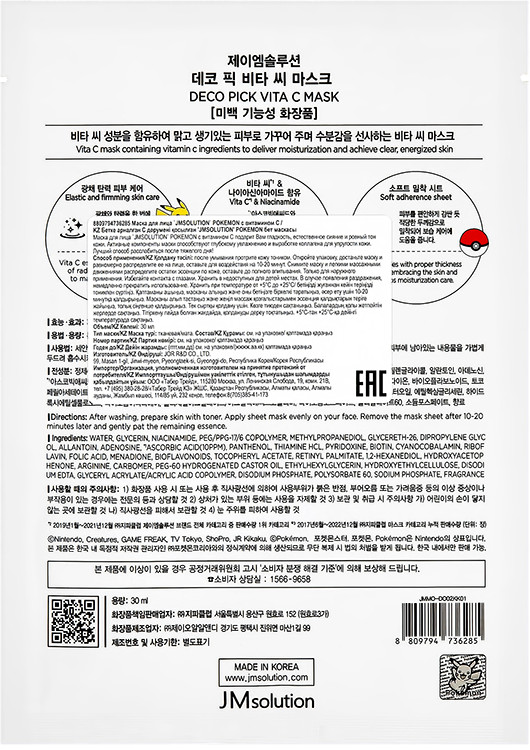 JMsolution Маска для лица тканевая увлажняющая с витамином С «Deco pick Vita C mask»