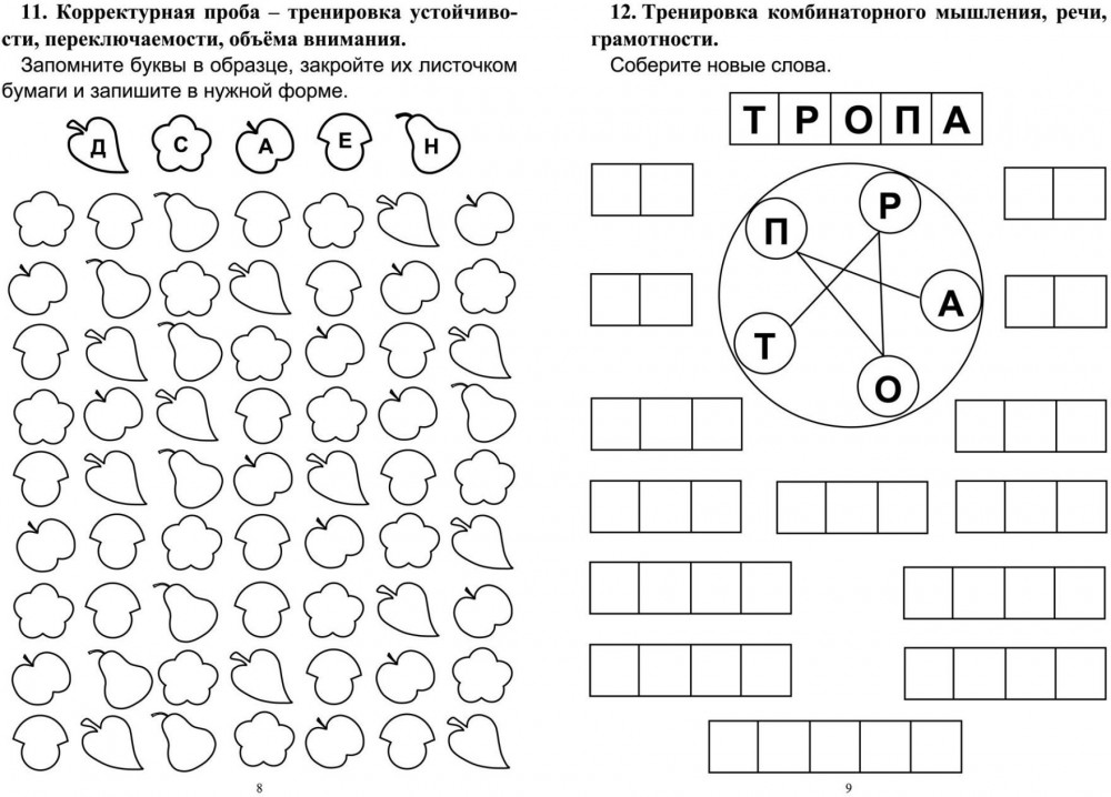 В тетрадях предложены разные по сложности и развивающим компонентам интересные задания и упражнения: графические, письменные, логические, пространственные, мыслительные, интеллектуальные, зрительно-моторной координации, творческие. Каждый взрослый найдёт для себя задания на каждый день и сможет системно и последовательно поддерживать свой актуальный запрос для конкретного занятия.