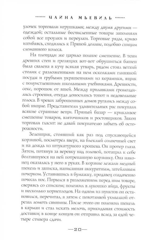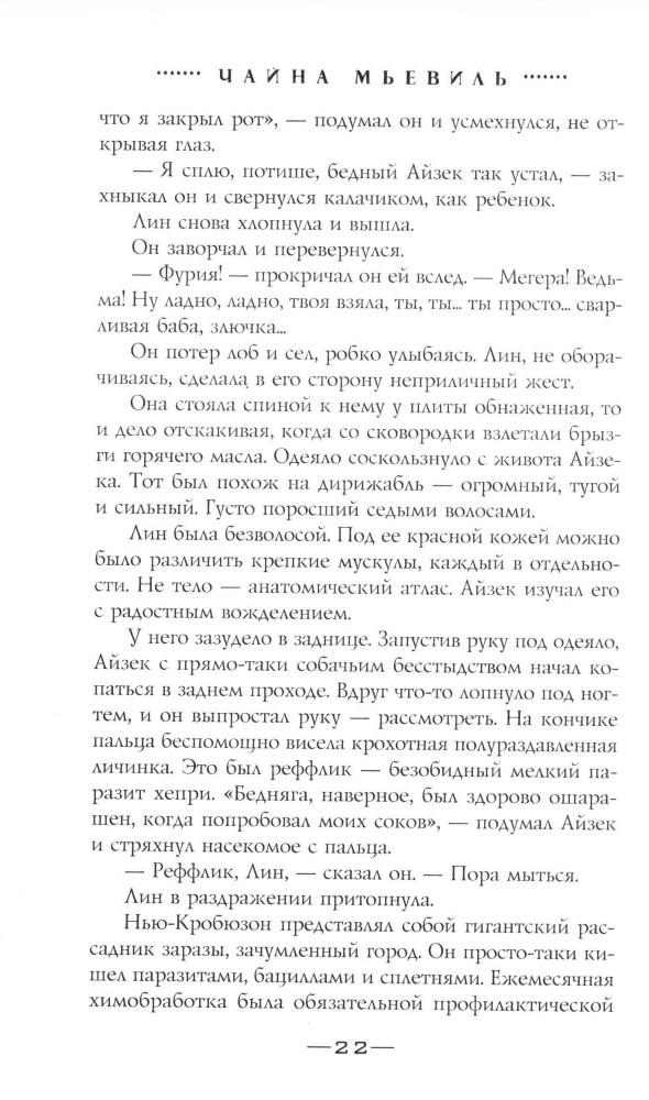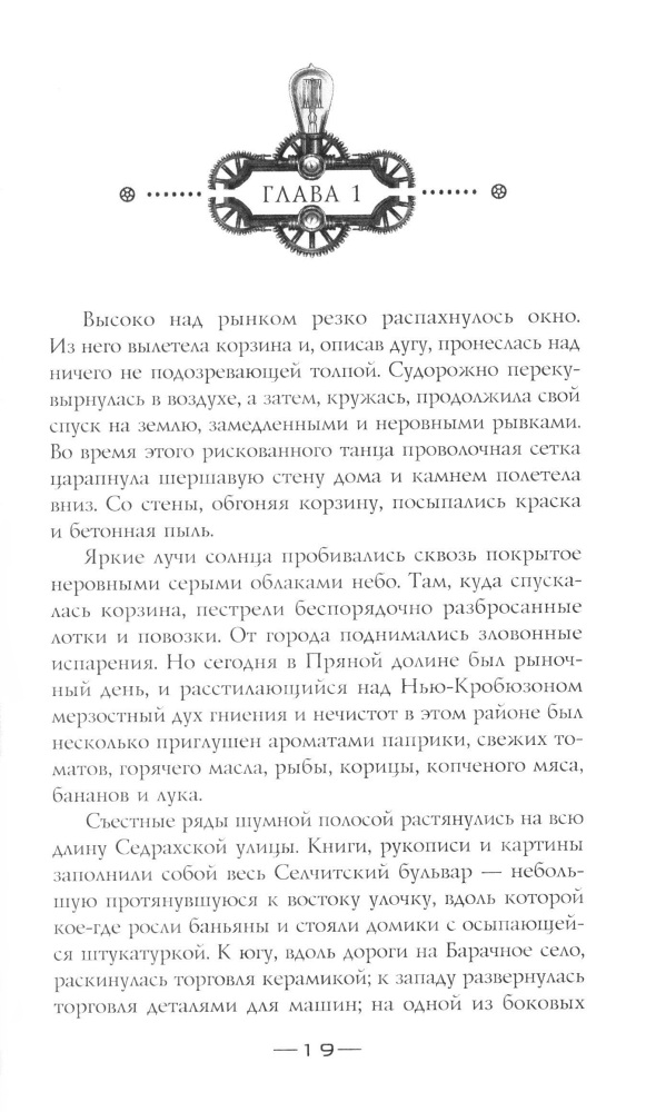 Атмосфера Нью-Кробюзона не отпускает очень долго после прочтения. Автор не поскупился на визуальное оформление сюжета: можно рисовать иллюстрации практически к каждой странице книги. Это книга не о людях, а о городе. Повествование идет очень размерено, местами затянуто, но это еще больше помогает погружению в этот мрачный мир. Надеюсь, когда-нибудь будет экранизация.