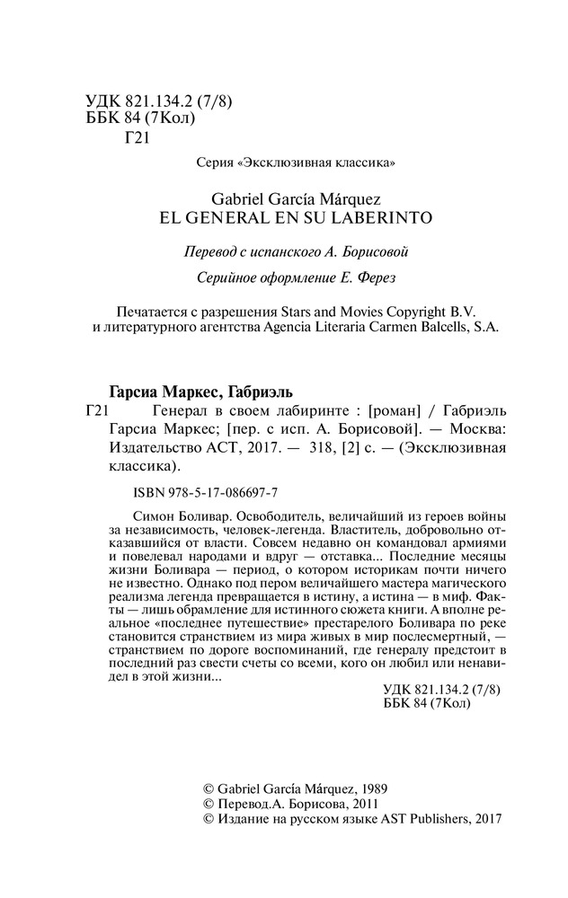 💳 Оплатить за товар можно при получении 🇰🇿 Есть бесплатная доставка по Казахстану от 1 дня 🎁 Копите бонусы с каждой покупки Серия: Эксклюзивная классика Симон Боливар. Освободитель, величайший из героев войны за независимость, человек-легенда. Властитель, добровольно отказавшийся от власти. Совсем недавно он командовал армиями и повелевал народами и вдруг — отставка… Последние месяцы жизни Боливара — период, о котором историкам почти ничего не известно. Однако под пером величайшего мастера магического реализма легенда превращается в истину, а истина — в миф. Факты — лишь обрамление для истинного сюжета книги. А вполне реальное «последнее путешествие» престарелого Боливара по реке становится странствием из мира живых в мир послесмертный, — странствием по дороге воспоминаний, где генералу предстоит в последний раз свести счеты со всеми, кого он любил или ненавидел в этой жизни… |