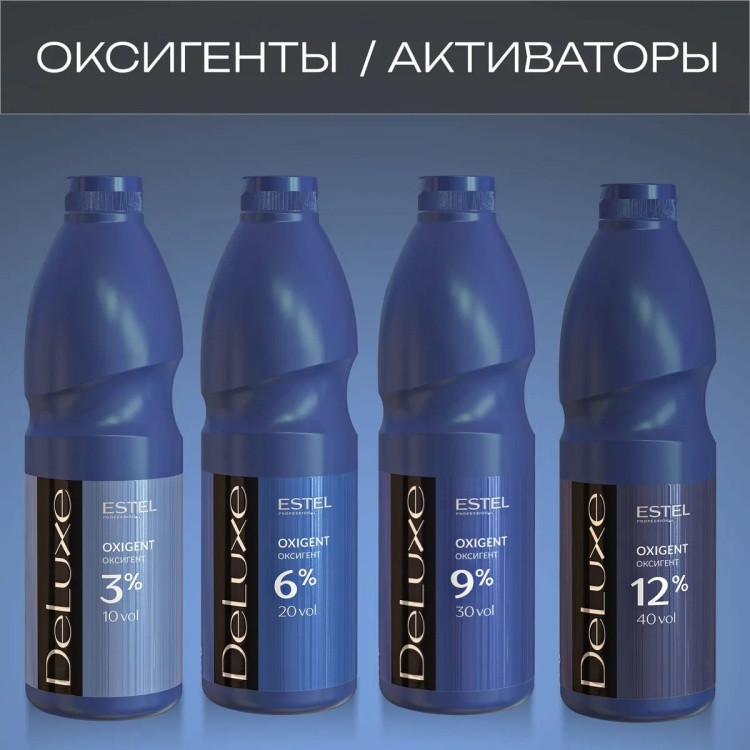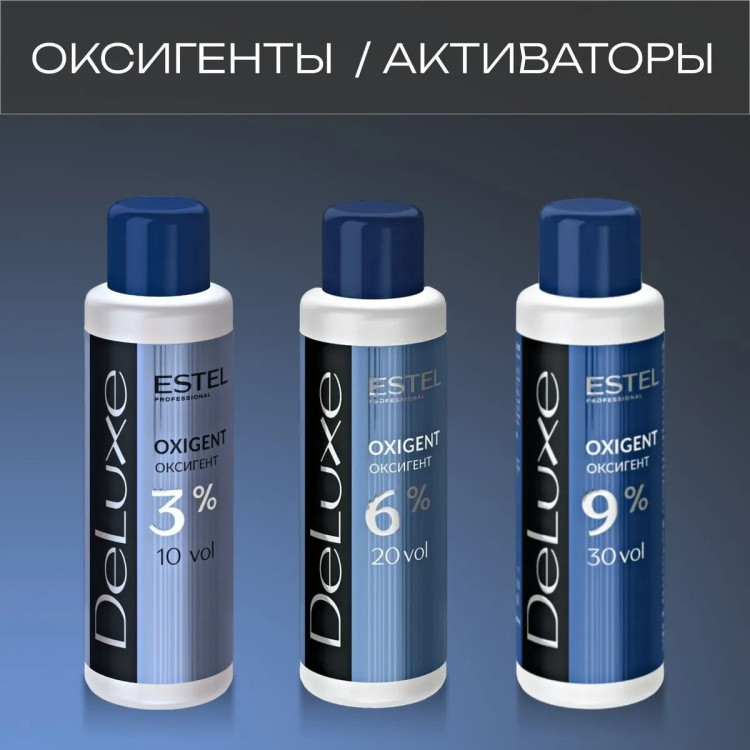 Способ применения: рекомендуемое соотношение при смешивании: 1:1. На 100% закрашивает седину. Время выдержки краски Estel DeLuxe составляет 35 минут. Рекомендации по выбору оксиданта: Оксидант Estel De Luxe 3% при окрашивании тон в тон или темнее по длине волос, при окрашивании корней волос с осветлением на 1 тон. Оксидант Estel De Luxe 6% при окрашивании с осветлением на 1 тон по длине волос, при окрашивании корней волос с осветлением на 2-3 тона. Оксидант Estel De Luxe 9% — при окрашивании с осветлением на 2-3 тона по длине волос, при окрашивании корней волос с осветлением на 3-4 тон. Оксидант Estel De Luxe 12% при окрашивании с осветлением на 3-4 тона.