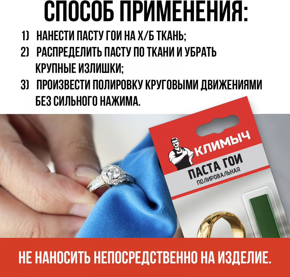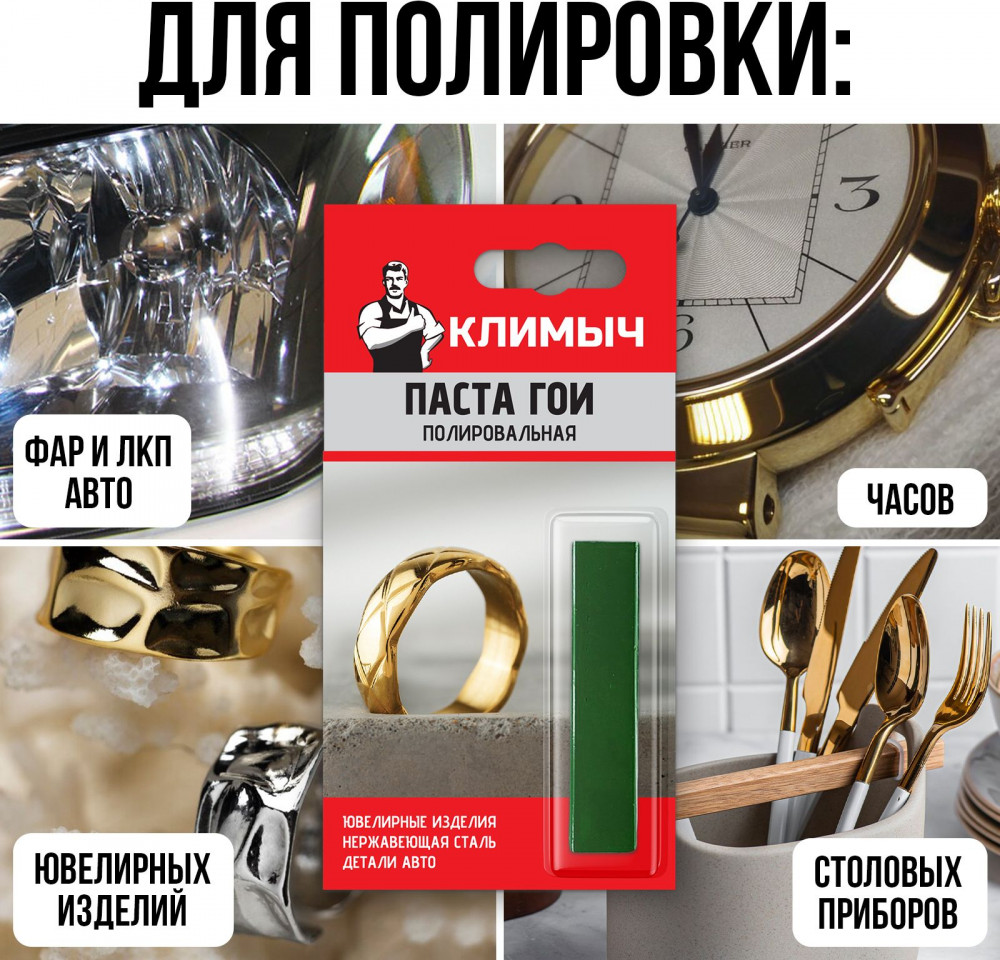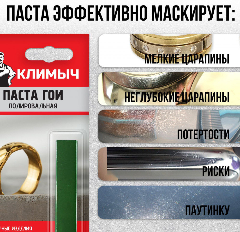 Паста Гои — это инновационный продукт, который стал незаменимым помощником в сфере производства, а также при реставрации антикварных предметов. Ее уникальная формула, разработанная специалистами в области полировки, обеспечивает безупречное качество обработки ювелирных изделий, часов, монет, посуды, столовых приборов, а также фар и кузова авто. Подходит для многих материалов, таких как: стальных сплавов, цветных металлов, стекла, керамики, золота, серебра, пластика. Независимо от того, нужна ли вам отполировать автомобиль, бронзовые статуэтки или мраморные фигуры. Её уникальные свойства позволяют эффективно удалять мелкие царапины, сколы, потертости и другие повреждения.