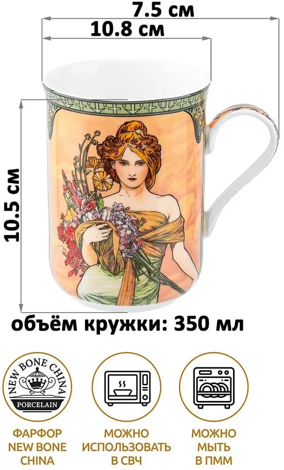 💳 Оплатить за товар можно при получении 🇰🇿 Есть бесплатная доставка по Казахстану от 1 дня 🎁 Копите бонусы с каждой покупки Серия: Времена года Набор 4 кружек «Времена года» предназначен для красивой сервировки стола. Выполнены из фарфора нового поколения new bone china, сочетающего в себе изящность и высокую прочность. За счёт гладкости изделия легко отмываются, поэтому долго сохраняют привлекательный вид и практичны в использовании. Плотная структура материала позволяет посуде дольше сохранять температуру блюд и напитков. От других видов костяного фарфора new bone china отличается большей экологичностью в производстве. Фарфоровая посуда украшена репродукциями картин чешского художника Альфонса Мухи. На каждой кружке изображена девушка, символизирующая одно из времён года. Яркий и узнаваемый сюжет удачно впишется в любой стиль интерьера, добавляя красоты и романтики. Чашки помогут провести множество приятных завтраков с капучино и латте, а также уютные чайные вечера с конфетами, вафлями и другими сладостями. Подойдёт ценителям чая и кофе, которые любят пить из красивой и необычной посуды. Согрейтесь зимой любимыми напитками: какао с маршмэллоу, ягодным чаем, горячим шоколадом, или освежитесь лимонадом летом. Элегантные кружки помогут организовать чаепитие в кругу друзей или семьи. Не рекомендуется применять абразивные моющие средства. Подходит для использования в посудомоечной машине и микроволновой печи. Поставляется в красивой картонной коробке — благодаря ей вам не потребуется дополнительная подарочная упаковка. Такой набор обязательно порадует истинных ценителей искусства, станет оригинальным подарком для любой хозяйки и незаменимым элементом сервировочного инвентаря в вашем доме! |