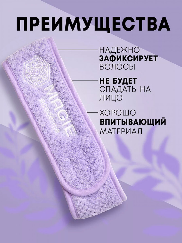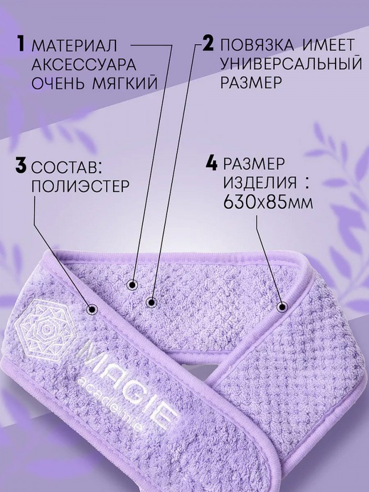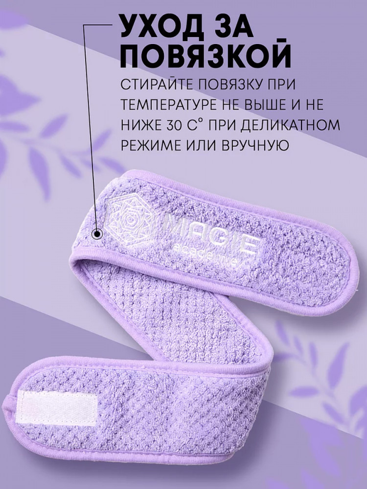 Повязка на голову Magie academie — идеальный и практичный аксессуар для приятных ритуалов красоты. Наши повязки подойдут для любого размера головы, так как они надежно фиксируются на голове при помощи застежки-липучки. Благодаря этому риск повредить укладку волос или испачкать аксессуар макияжем практически исключен. Повязка удерживает воду и помогает предостеречь волосы от намокания или случайного попадания на них косметического средства для лица. Таким образом, из-за хороших впитывающих свойств материала, повязка послужит незаменимым помощником в занятиях спортом и избавит вас от необходимости брать с собой маленькое полотенце, чтобы убрать пот со лба.