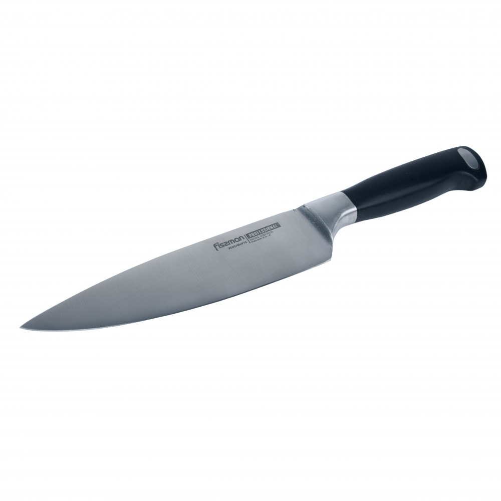 Поварской нож изготовлен из высококачественной нержавеющей стали марки X30Cr13. Твердость ножа хорошо сбалансирована, долго держит идеальную заводскую и принимает новую, домашнюю заточку, не гнется и не ломается при боковой нагрузке, лезвие не крошится и не меняется. Не скользящая бакелитовая ручка.