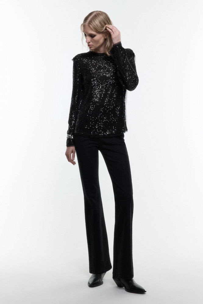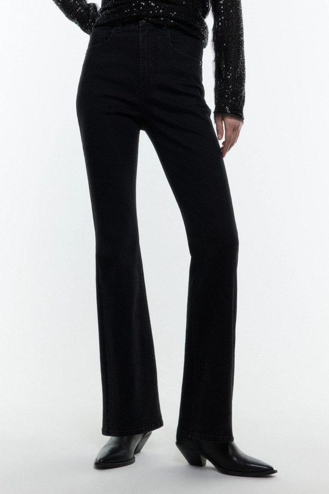 Облегающие женские джинсовые брюки, расклешенные от колена, из качественного, мягкого хлопкового денима с эффектом стрейч. Высокая посадка по талии, подчеркивающая фигуру. Длинные облегающие штанины клеш от колена без декоративных элементов. Застежка на молнию и пуговицу спереди, шлевки для ремня. Пять карманов, металлические заклепки на карманах спереди, фирменная нашивка на поясе сзади. Темные джинсы-клеш с классическим вареным эффектом. Трендовые джинсы flare с идеальной посадкой по фигуре для самых стильных и неотразимых аутфитов на каждый день или по особым поводам. Дополни их удобным верхом и создай самый удобный, стильный и привлекательный лук на любой сезон и по любому поводу. Самые удобные и стильные джинсы-клеш с высокой посадкой подойдут как к грубым ботинкам, так и к женственным туфлям или повседневным кроссовкам - выбирай свой собственный стиль и экспериментируй с образами.