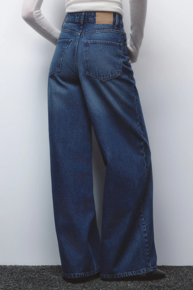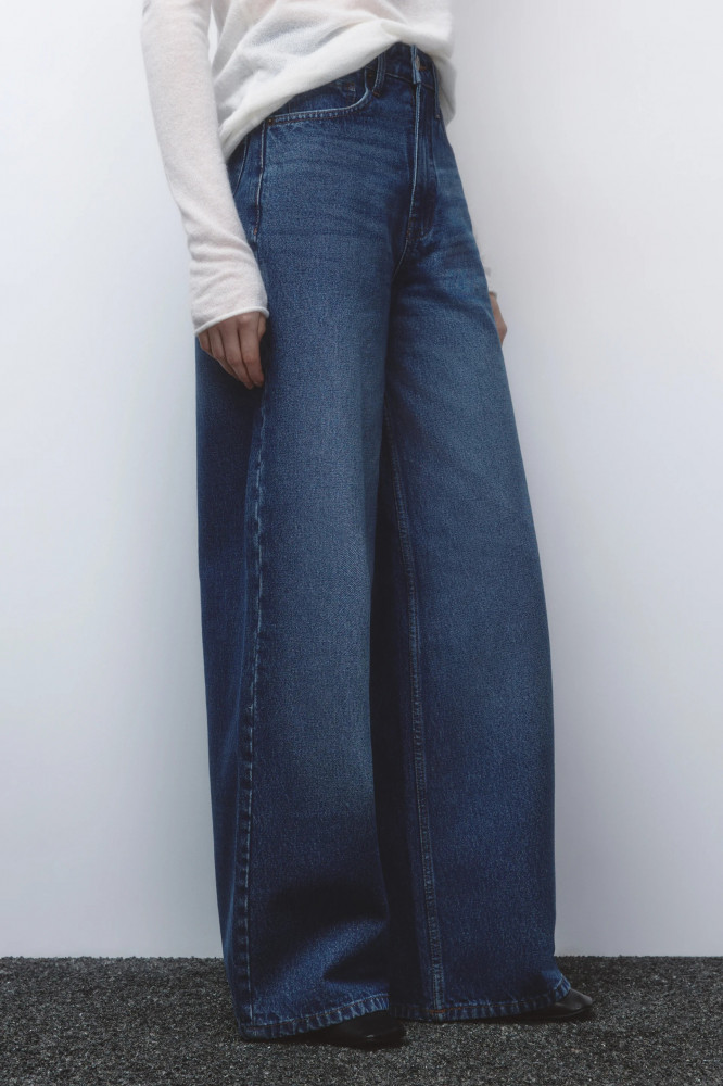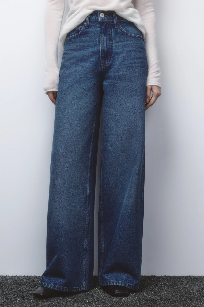 Широкие женские джинсы-трубы wide leg из плотного 100% хлопкового денима. Комфортная высокая посадка по талии подчеркивает фигуру и скрывает недостатки. Длинные прямые штанины клеш от бедра. Два боковых кармана с отрезным бочком, два накладных кармана сзади, кармашек для мелочи. Металлические заклепки на карманах спереди. Шлевки для ремня, застежка на молнию и пуговицу спереди. Темные джинсы с актуальным вареным эффектом станут основой образов на любой сезон. Стильные и удобные широкие джинсы вайд с удлиненными штанинами для расслабленных повседневных и уличных луков с твоим любимым верхом. Надевай широкие джинсы из новой зимней коллекции в школу, университет или офис. Создавай самые удобные и стильные аутфиты на каждый день с этими вареными джинсами-трубами, которые идеально подойдут также для высоких девушек. Заверши образ удобной обувью и любимыми аксессуарами.