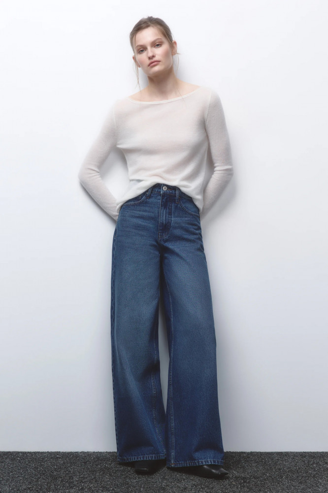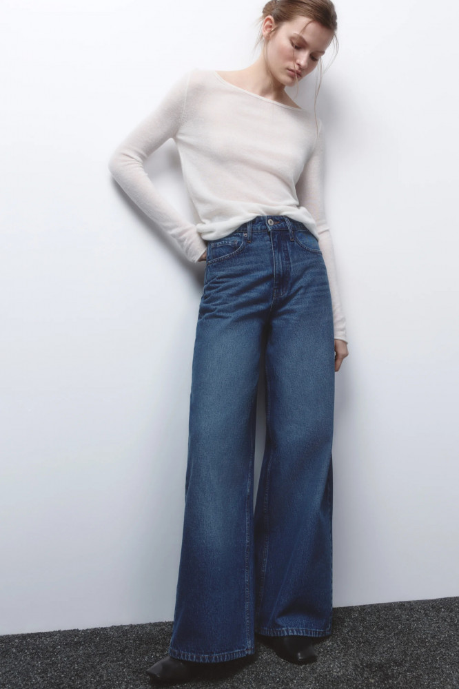 Широкие женские джинсы-трубы wide leg из плотного 100% хлопкового денима. Комфортная высокая посадка по талии подчеркивает фигуру и скрывает недостатки. Длинные прямые штанины клеш от бедра. Два боковых кармана с отрезным бочком, два накладных кармана сзади, кармашек для мелочи. Металлические заклепки на карманах спереди. Шлевки для ремня, застежка на молнию и пуговицу спереди. Темные джинсы с актуальным вареным эффектом станут основой образов на любой сезон. Стильные и удобные широкие джинсы вайд с удлиненными штанинами для расслабленных повседневных и уличных луков с твоим любимым верхом. Надевай широкие джинсы из новой зимней коллекции в школу, университет или офис. Создавай самые удобные и стильные аутфиты на каждый день с этими вареными джинсами-трубами, которые идеально подойдут также для высоких девушек. Заверши образ удобной обувью и любимыми аксессуарами.