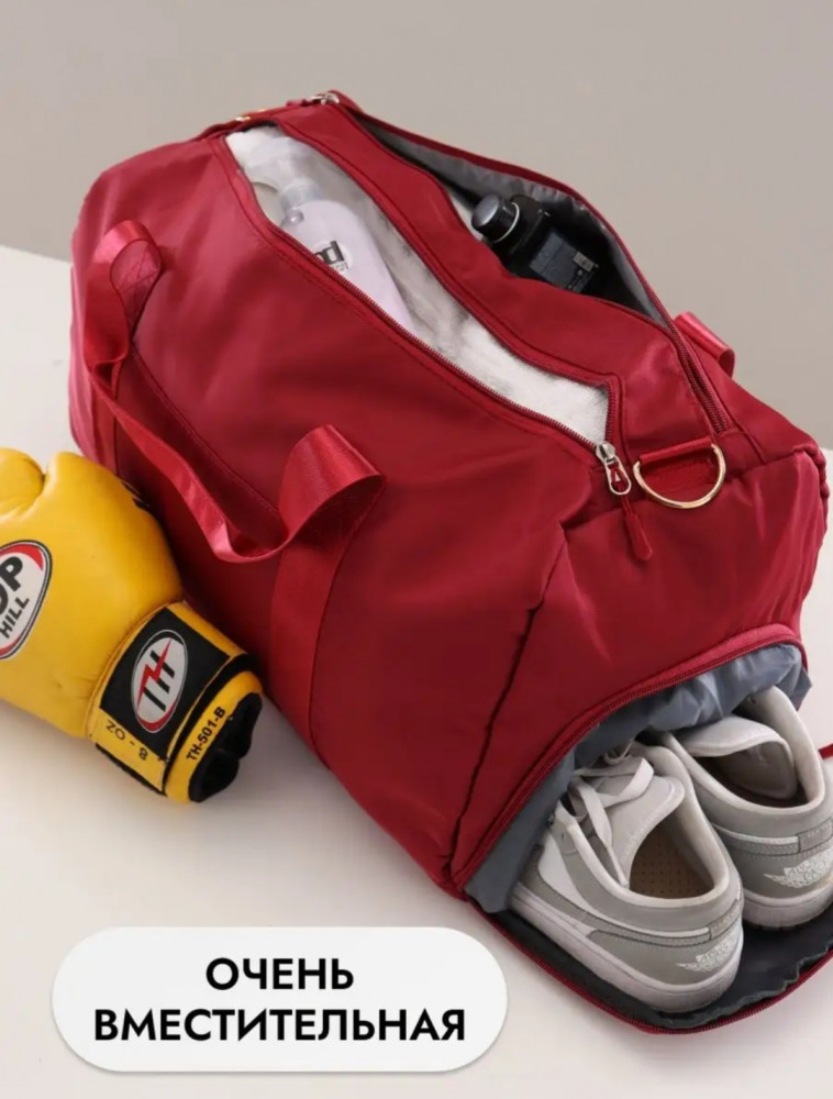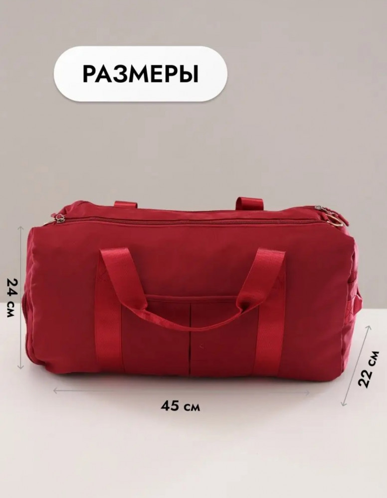 Наша модель сумки - идеальный выбор для женщин и мужчин, ведущих активный образ жизни и стремящихся выглядеть стильно в любое время дня! Сумка идеально подойдет для похода на фитнес, посещения бассейна, а также для путешествий и перелетов. Вы можете использовать ее в качестве ручной клади в самолете. Комфортная ручка позволяет легко носить в руке, а наличие регулируемого плечевого ремня позволит вам носить ее через плечо или на плече, в зависимости от вашего предпочтения. Благодаря разнообразию цветов, вы сможете подобрать идеальный оттенок, который будет отражать вашу индивидуальность. Сумка выполнена из износостойкого водоотталкивающего материала оксфорд. Большой объем позволяет вместить одежду, обувь, полотенце, документы, косметичку, телефон и другие аксессуары. Внутри универсальной сумки есть один карман на молнии. Снаружи предусмотрен боковой карман на молнии и специальный карман с удобной фиксацией сверху на ручку чемодана. В нижней части сумки большой отдел на молнии, который предусмотрен для обуви. Благодаря непромокаемому материалу, вы можете быть уверены, что ваши вещи будут защищены от непогоды, грязи и случайных пятен. Сумка станет любимым аксессуаром для повседневного использования
