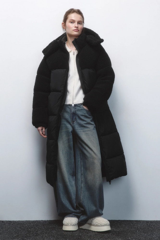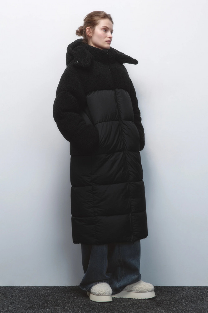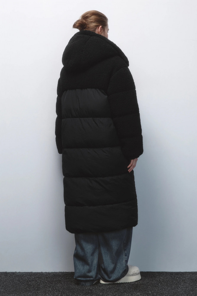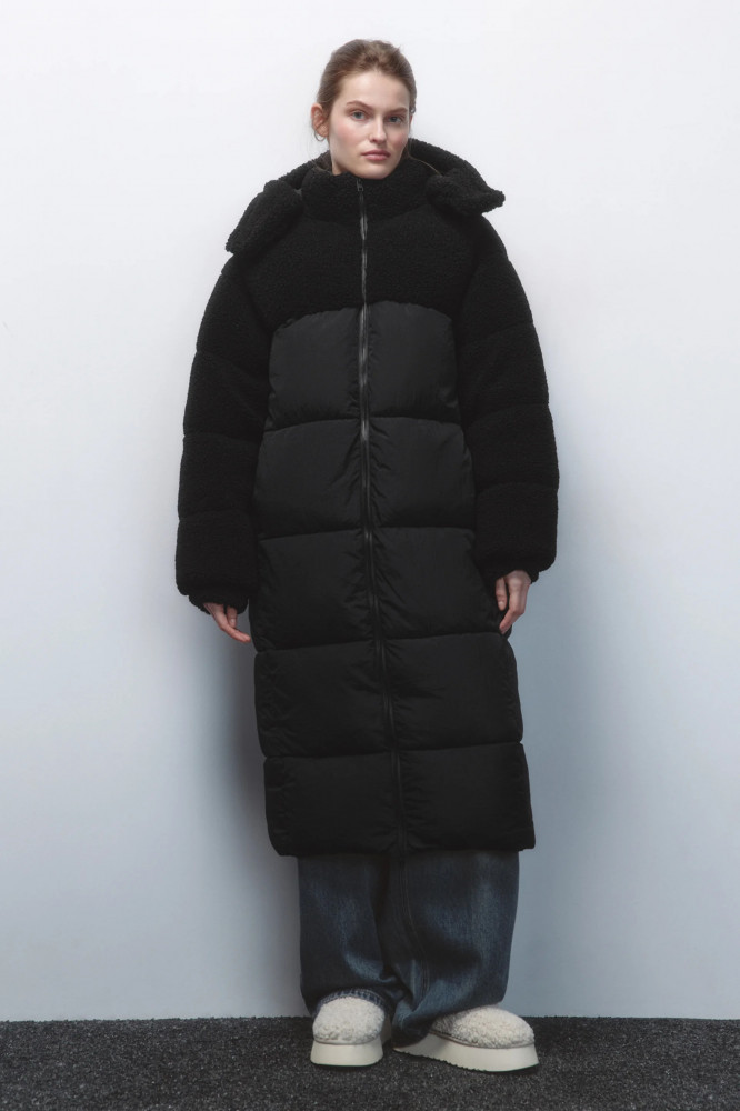 Длинная стеганая куртка-пальто свободного прямого кроя с легким искусственным утеплителем (синтепух). Кокетка и капюшон из искусственного меха. Объемный несъемный капюшон на кнопках с высоким воротником-стойкой. Застежка на молнию по всей длине. Длинные свободные рукава с присборенными манжетами и спущенной линией плеча. Два боковых кармана шве без застежки. Прямой нижний край без разрезов. Легкое и очень теплое стеганое зимнее пальто с капюшоном защитит тебя от холодных ветров, морозов и других неожиданностей погоды. Сочетай его с любимым низом и создавай стильные, теплые и уютные аутфиты на каждый день. Благодаря свободному крою можно надевать под низ теплые свитера и толстовки, чтобы было еще комфортнее гулять даже в самую холодную погоду.