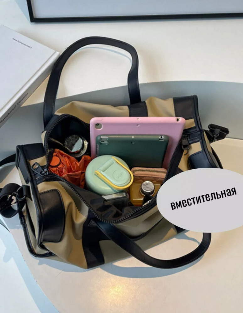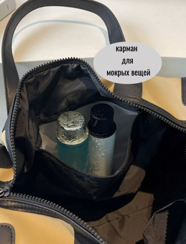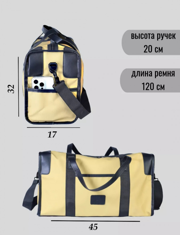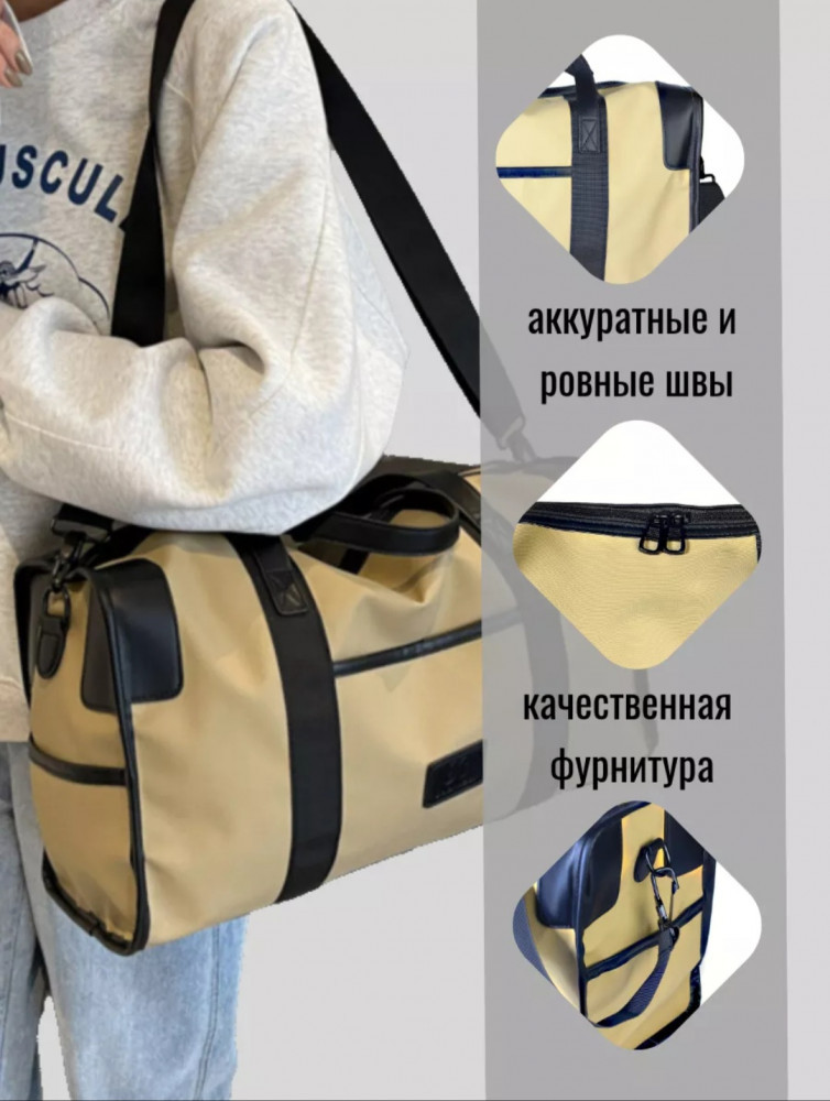 Наша универсальная модель сумки — идеальный выбор для женщин и мужчин, ведущих активный образ жизни и стремящихся выглядеть стильно в любое время дня! Сумка идеально подойдет для похода на фитнес, посещения бассейна, а также для путешествий и перелетов. Вы можете использовать ее в качестве ручной клади в самолете или как сумка на чемодан. Комфортные ручки позволяет легко носить в руке, а наличие регулируемого плечевого ремня и карабинов позволит вам носить её через плечо или на плече, в зависимости от вашего предпочтения. Сумка выполнена из износостойкого водоотталкивающего материала оксфорд с элегантными вставками из экокожи, что придает ей особый шарм. Большой объем позволяет вместить одежду, обувь, полотенце, документы, косметичку, телефон и другие аксессуары. Внутри универсальной сумки есть один водонепроницаемый карман на молнии и два открытых кармана. Снаружи сумки имеется два открытых боковых кармана и один открытый передний карман. Благодаря непромокаемому материалу, вы можете быть уверены, что ваши вещи будут защищены от непогоды, грязи и случайных пятен. Наша сумка станет вашим любимым аксессуаром для повседневного использования!