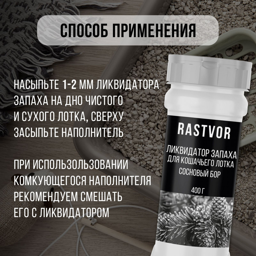 RASTVOR Ликвидатор запаха для кошачьего туалета «Сосновый бор»В данный момент этот товар отсутствует в продаже. Возможно, у нас найдется аналогичный или похожий товар здесь. Средство для борьбы с запахами от животных, в частности нейтрализатор запаха животных, представляет собой современное решение проблемы неприятных запахов, возникающих в кошачьем туалете. Этот ликвидатор запаха для кошачьего туалета эффективно устраняет запах мочи, обеспечивая чистоту и свежесть в вашем доме. Он создан специально для нейтрализации запаха и действует на причину возникновения неприятных ароматов, а не просто маскирует их. Главная особенность этого средства от запаха кошачьей мочи заключается в том, что оно обладает способностью не только ликвидировать зловоние, но и придавать приятный хвойный аромат, который радует хозяев. Это особенно важно, так как с помощью нейтрализатора можно реже менять наполнитель, тем самым облегчая уход за туалетом вашей кошки. Использование этого устранителя запаха совершенно безопасно для животных, что делает его отличным выбором для всех владельцев пушистых любимцев. Кроме того, легкий хвойный аромат не будет мешать вашей кошке комфортно пользоваться своим туалетом. |