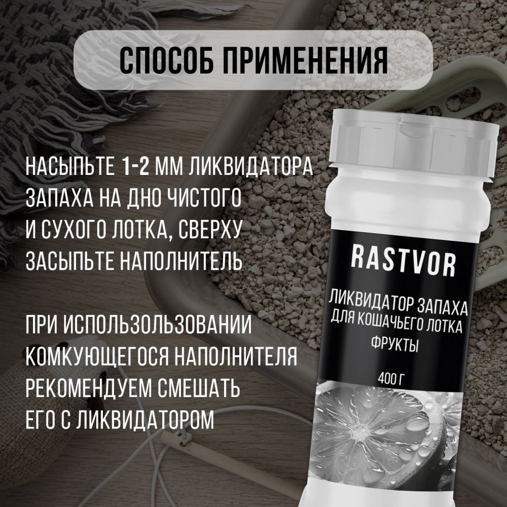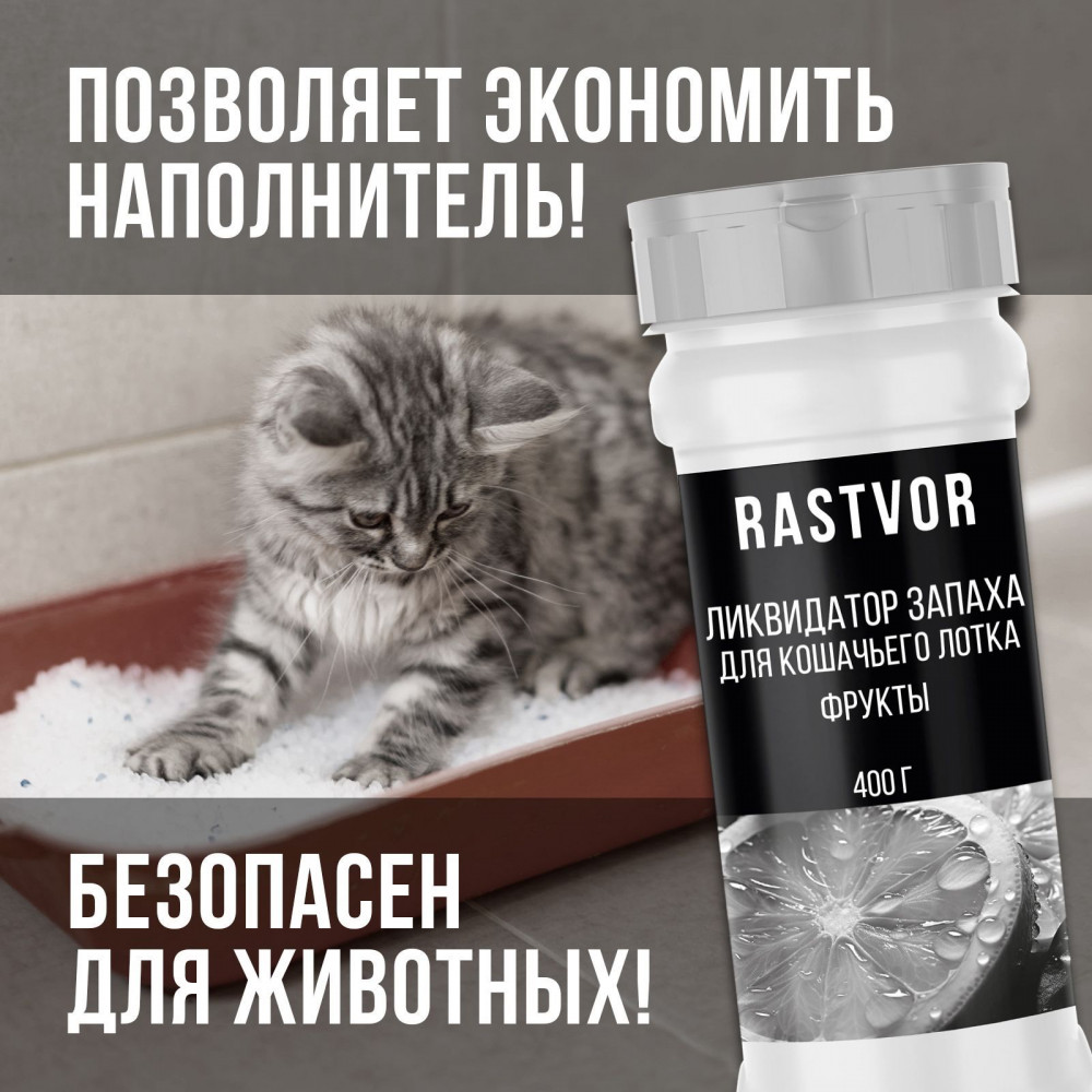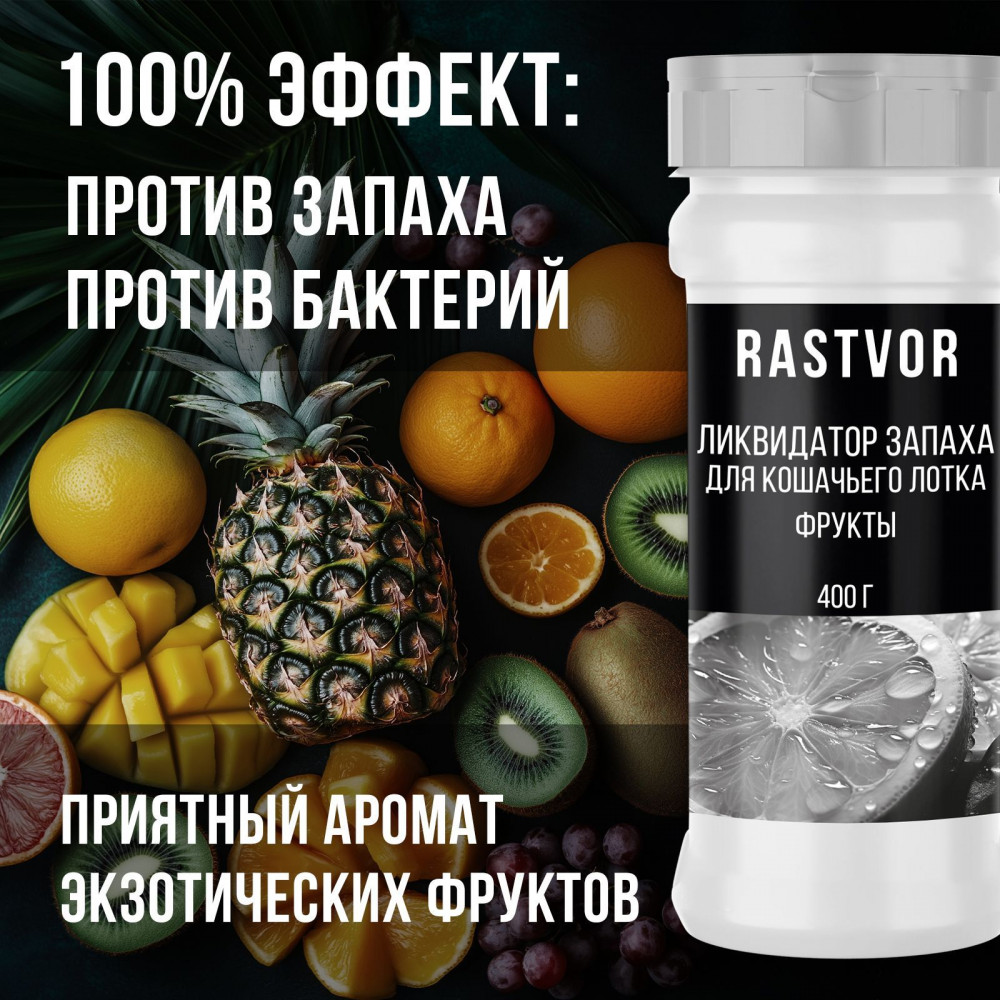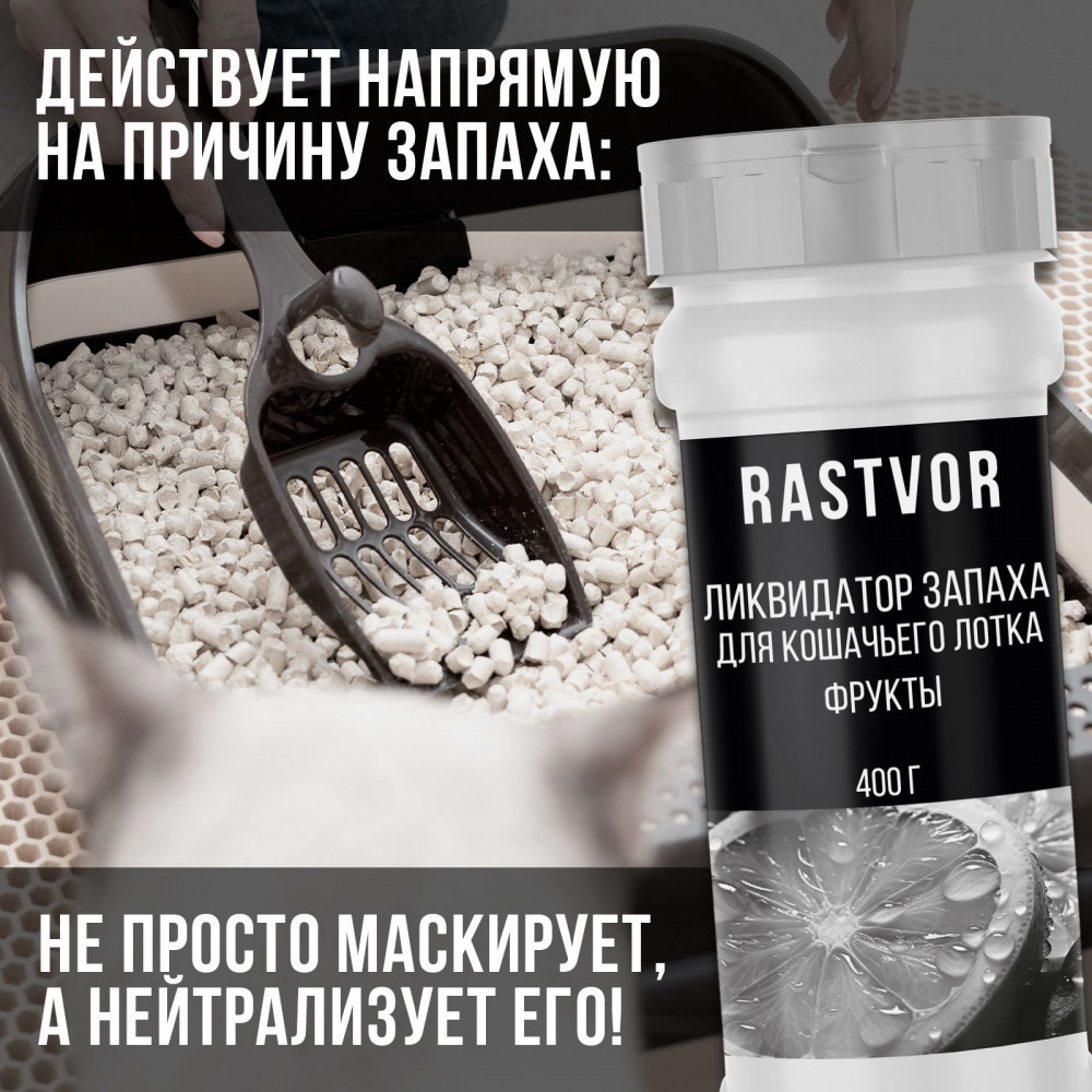 RASTVOR Ликвидатор запаха для кошачьего туалета «Фрукты»В данный момент этот товар отсутствует в продаже. Возможно, у нас найдется аналогичный или похожий товар здесь. Проблема неприятного запаха от кошачьей мочи может стать настоящей головной болью для владельцев животных. Для борьбы с этой ситуацией был разработан эффективный нейтрализатор запаха животных, который также можно использовать как ликвидатор запаха для кошачьего туалета. Благодаря своим уникальным свойствам, он устраняет не только саму вонь, но и помогает поддерживать свежесть в помещении, создавая приятный ненавязчивый аромат фруктов. Средство от запаха кошачьей мочи воздействует на источник проблемы, а не просто маскирует ее. Это делает его более эффективным, ведь оно нейтрализует запахи на молекулярном уровне, обеспечивая долгосрочный результат. Важно отметить, что этот устраняющий запах от кошек продукт безопасен для ваших питомцев, так как не содержит вредных химических веществ. Даже когда запах нейтрализован, никаких резких ароматов, которые могли бы беспокоить животных, не остается — фруктовый запах остается ненавязчивым и не нарушает комфорт кошки во время использования туалета. |