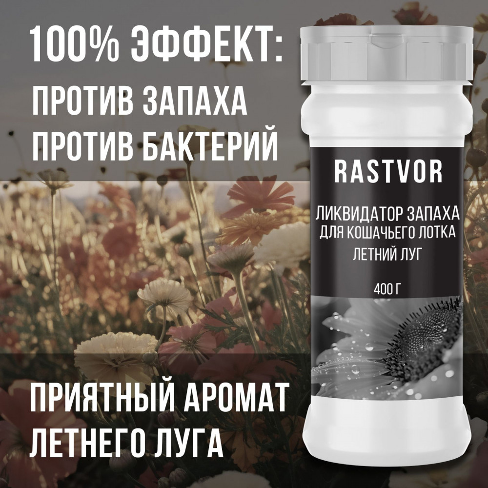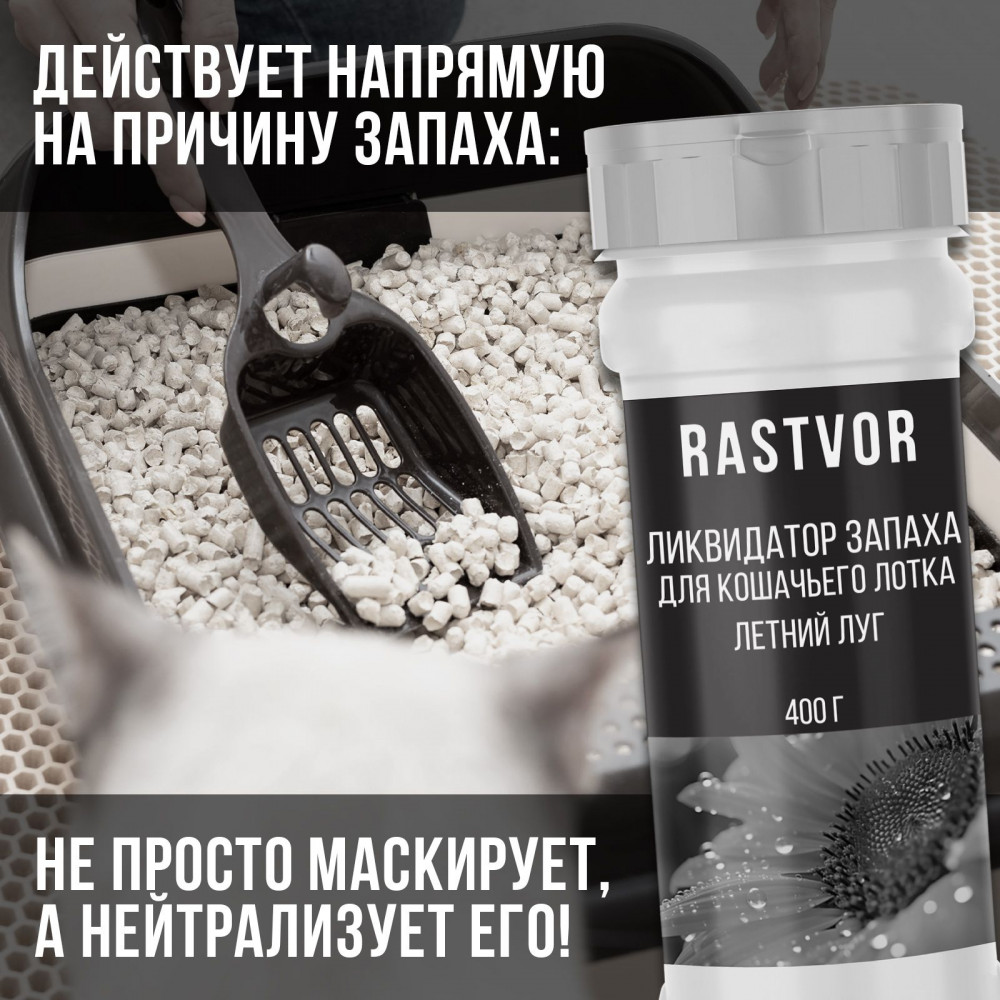 RASTVOR Ликвидатор запаха кошачьего туалета «Летний луг»В данный момент этот товар отсутствует в продаже. Возможно, у нас найдется аналогичный или похожий товар здесь. Ликвидатор запаха — это уникальное хозяйственное средство для удаления неприятных ароматов из туалета вашего котика. Оно продлевает срок службы наполнителя и облегчает процесс очистки и уборки лотка. Продукт помогает поддерживать чистоту и свежесть в доме, так как нейтрализует запах кошачьей мочи и обеспечивает защиту против меток животного. Поглотитель ароматов используется после чистки и мытья лотка или домика питомца моющими средствами и дезинфицирует поверхность. Состав можно смывать в унитаз, он не содержит вредной химии и безопасен для кошек и собак. Освежитель быстро справляется с неприятными запахами, создавая приятную атмосферу. Устранитель запахов доступен в различных ароматах и является незаменимым помощником для владельцев котов и собак. Дезинфицирующая порошкообразная смесь обеспечивает гигиеническую чистоту кошачьего туалета и комфорт во всём доме. Ароматизатор представлен в нескольких вариантах, а также среди наших товаров представлены и другие средства для ухода за домашними питомцами и полезная чистящая бытовая химия для полноценной уборки всей квартиры: туалетной, ванной комнаты, кухни. |