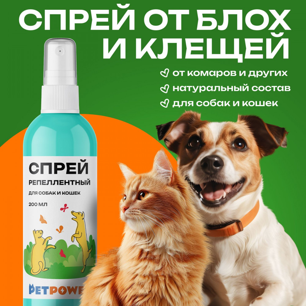 | PETPOWER Репеллентный спрей для кошек и собак от блох и клещей