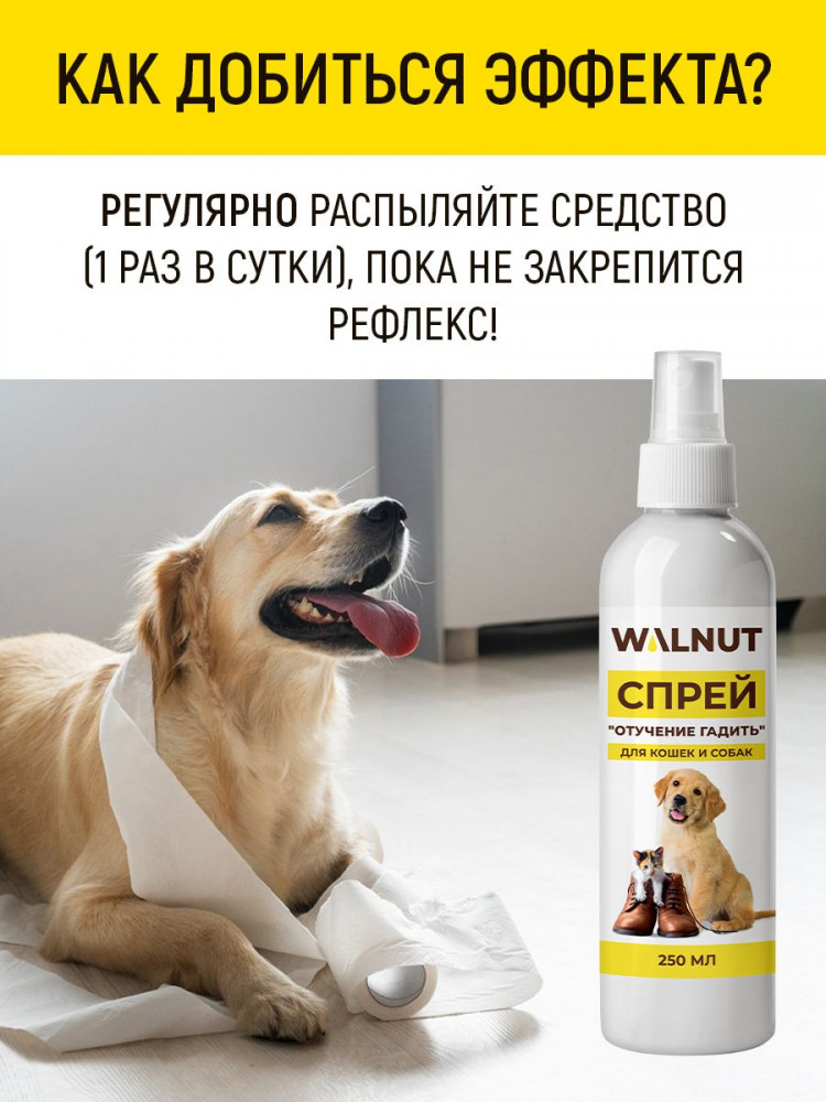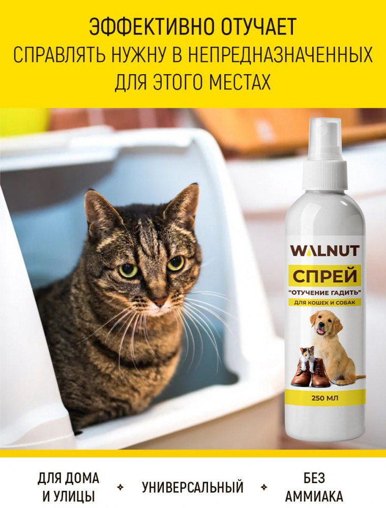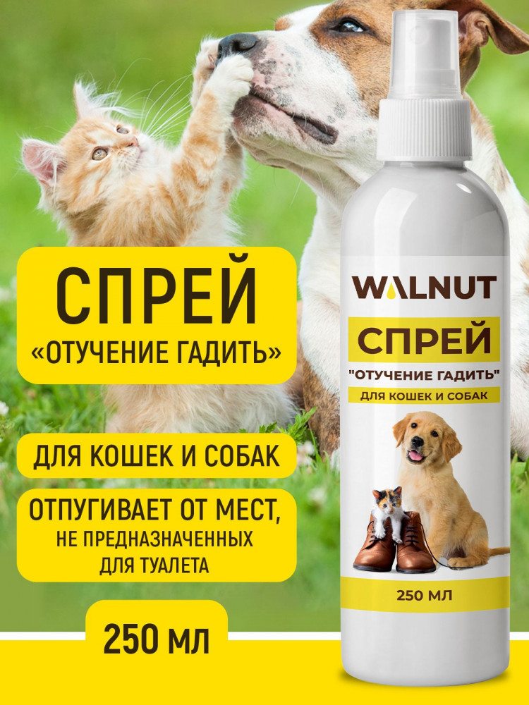 WALNUT Спрей для кошек и собак «Отучение гадить»В данный момент этот товар отсутствует в продаже. Возможно, у нас найдется аналогичный или похожий товар здесь. Универсальное стоп средство, созданное для решения проблем с гигиеной ваших крупных и маленьких питомцев, а так же с защитой мебельных и текстильных изделий и вещей квартиры. Гипоаллергенный продукт не только эффективно устраняет запахи мочи, но и помогает в процессе отучения животных гадить в неподходящих местах квартиры. Эфективный устранитель против неприятных ароматов. Этот антизапах содержит уникальную формулу, где ингредиенты поглотители не только маскируют их, но и нейтрализуют, обеспечивая свежесть в вашем доме. |