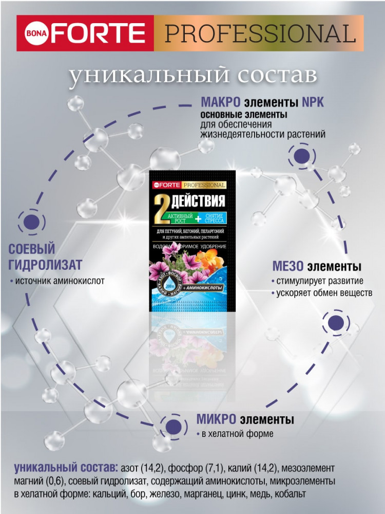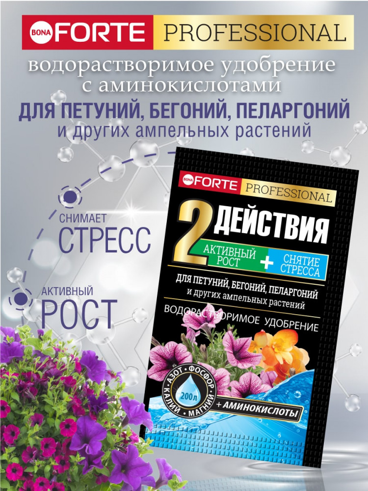 Bona Forte Удобрение «Для петуний, бегоний, пеларгоний»+10
