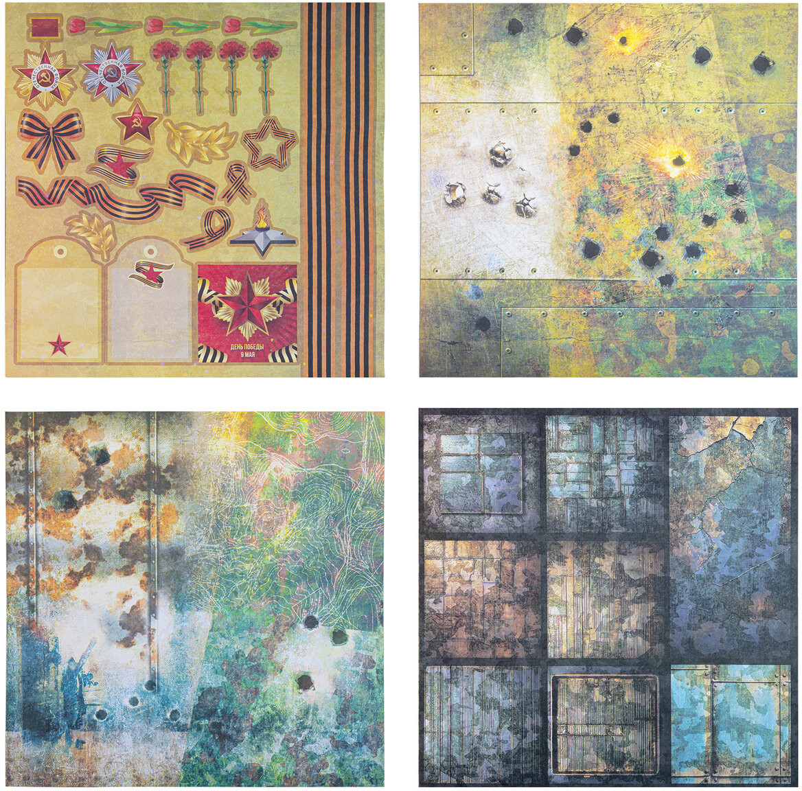Стиль «Милитари» подойдет для дембельских альбомов, военных альбомов, альбомов посвященных армии, ДМБ, Дембель и открыток к 23 февраля. В наборе также содержатся изображения георгиевской ленточки и элементы фалеристики.