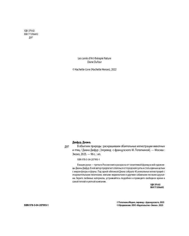 💳 Оплатить за товар можно при получении 🇰🇿 Есть бесплатная доставка по Казахстану от 1 дня 🎁 Копите бонусы с каждой покупки Серия: Очаровательные раскраски. Бестселлеры от Дианы Дюфур Хотите отвлечься от рутинных дел и сменить обстановку, не выходя из дома? Раскраска-антистресс от известной французской художницы Дианы Дюфур поможет вам в этом. |