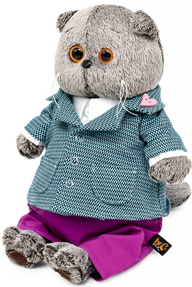 Budi Basa Игрушка мягкая «Басик в пиджаке с орнаментом»В данный момент этот товар отсутствует в продаже. Возможно, у нас найдется аналогичный или похожий товар здесь. Серия: Basik Кот Басик в суперстильном костюме. На нём пиджак из жаккардового трикотажа цвета воды с мелким графичным орнаментом. Пиджак сшит с английским воротником, накладными карманами и застёжкой на кнопки. На лацкане пиджака трогательный аксессуар – брошка-пуговица в виде розового сердечка. Также на Басике классические брюки из плотной пурпурной ткани и белоснежная хлопковая манишка. |