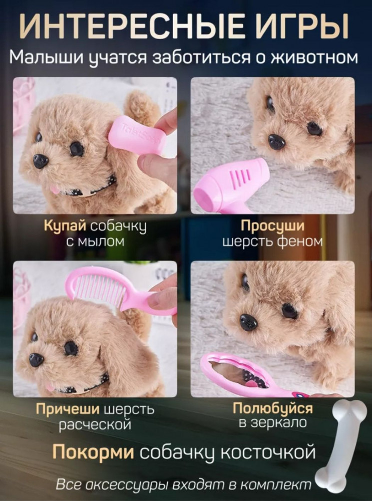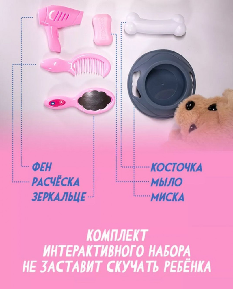 Игрушка отличная! Сама собачка, необыкновенно миленькая. А тут ещё и переноска с дополнительными игрушками. Взяла на подарок, на день рождения, а получила дополнительно от продавца подарок (2 набора: один набор для игры в больницу; а второй - для ухода за волосами принцесс), за это отдельная благодарность продавцу за такой сюрприз. Благодарю команду flip