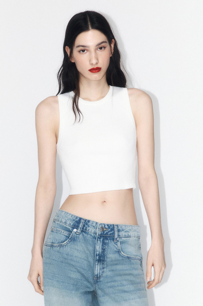 Укороченный женский топ-майка облегающего кроя из мягкой, эластичной и очень приятной к телу вискозной ткани тонкой вязки. Высокий круглый вырез горловины без воротника. Широкие бретели без регулировки по длине. Прямой нижний край без разрезов. Основа основ и мастхэв любого базового гардероба: мягкая вискозная майка на широких бретелях на любой случай жизни. Универсальная и суперудобная вязаная майка-топ из вискозной ткани идеально подойдет для стильных аутфитов на учебу, в офис или просто на каждый день. Сочетай ее с любым низом и создавай расслабленные и стильные кэжуал-луки, в которых тебе будет максимально удобно. Носи этот вязаный кроп-топ под пиджак, отдельно или используй в качестве основы для трендовых многослойных луков.