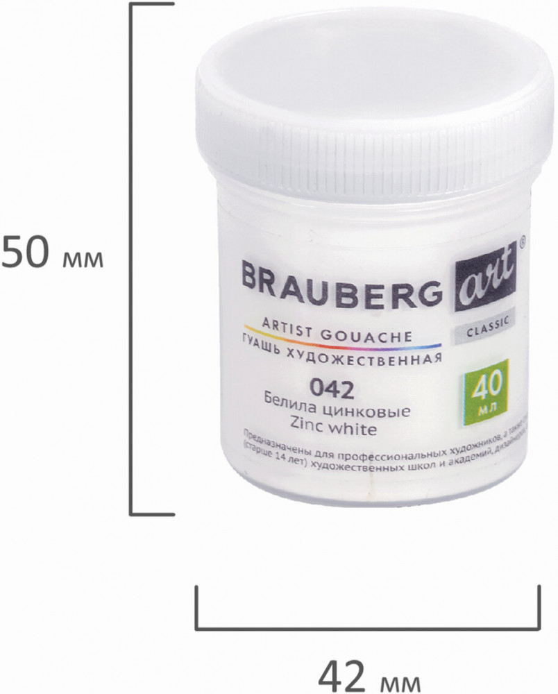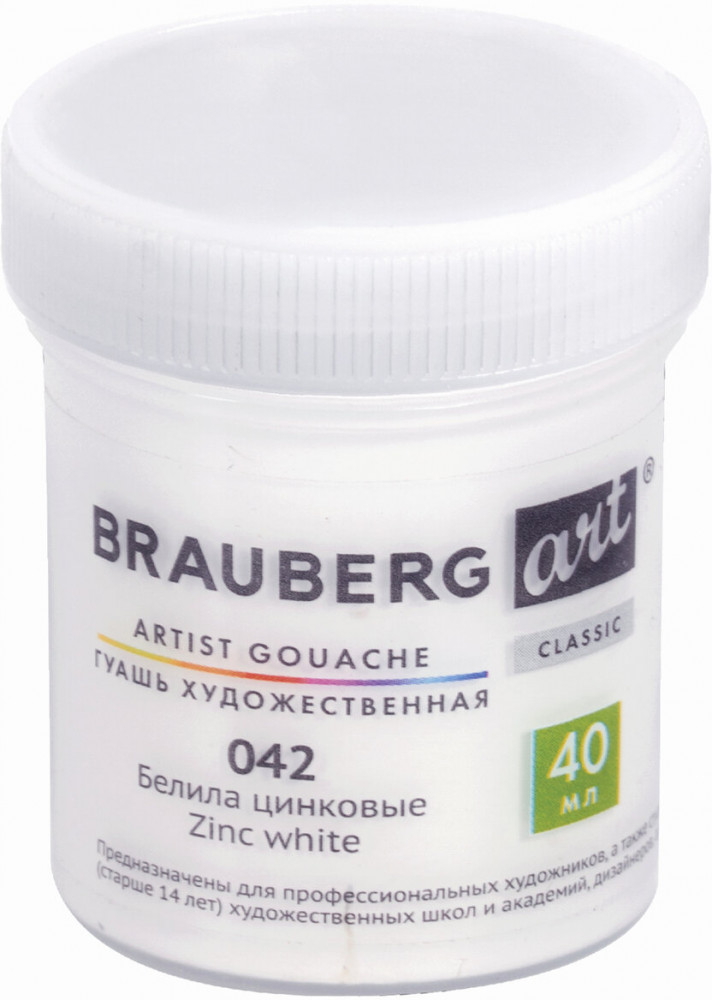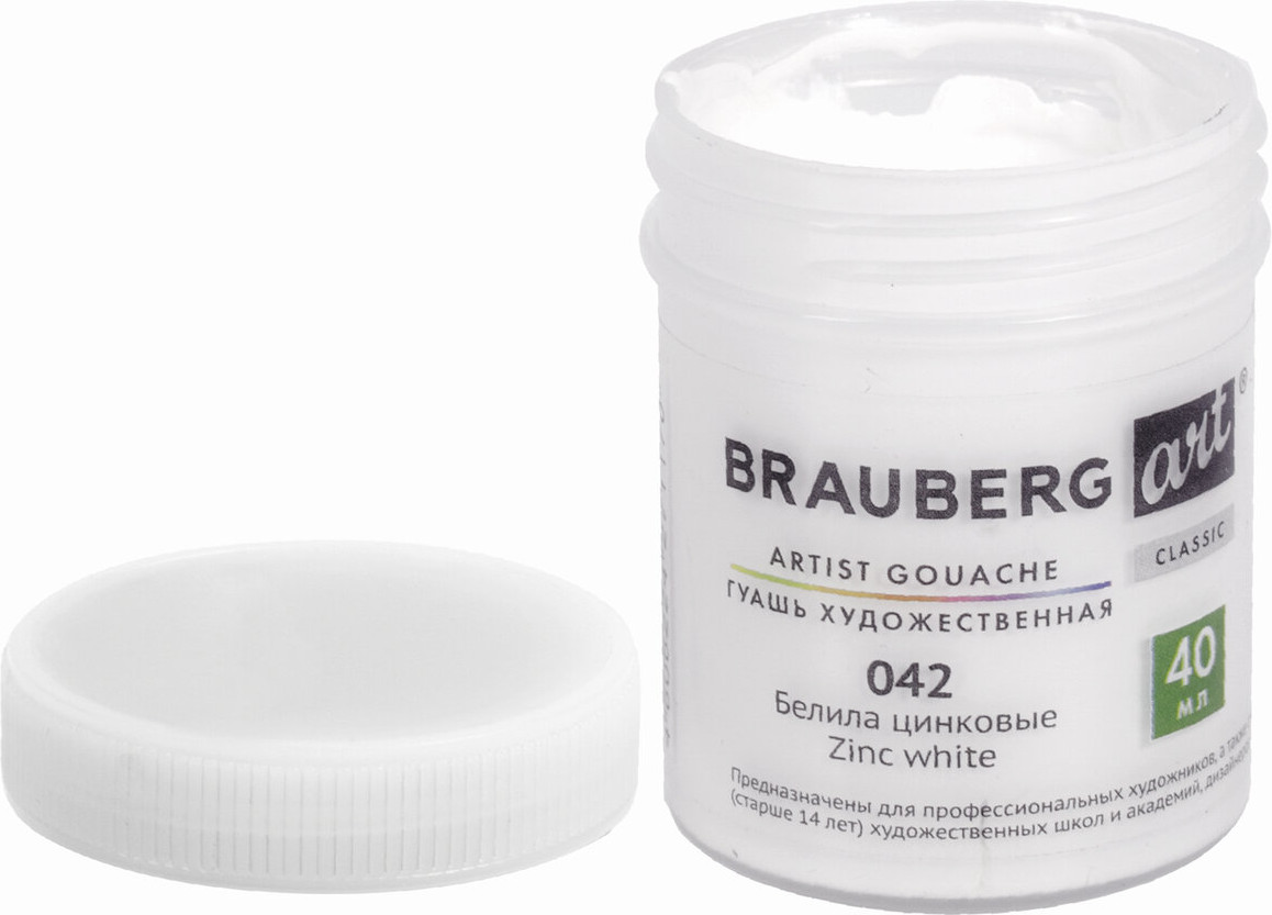 Brauberg Гуашь художественная, 042 белила цинковые+19