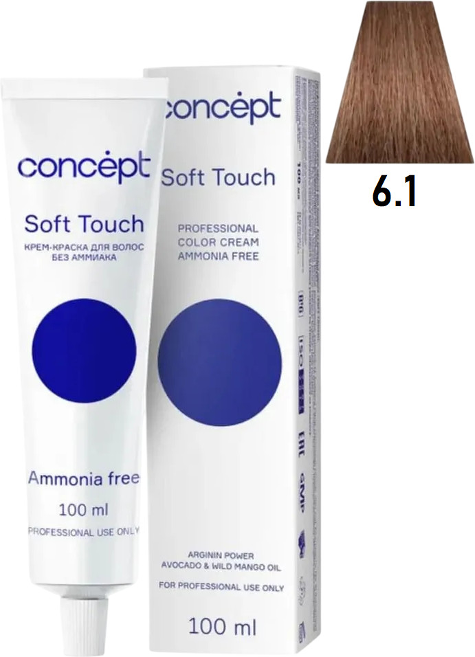 Concept Крем-краска для волос безаммиачная, оттенок 6.1 Средний блондин пепельный