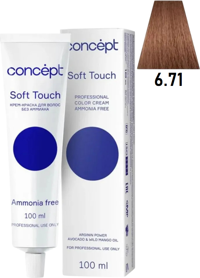 Concept Крем-краска для волос безаммиачная, оттенок 6.71 Средний блондин коричнево-пепельный
