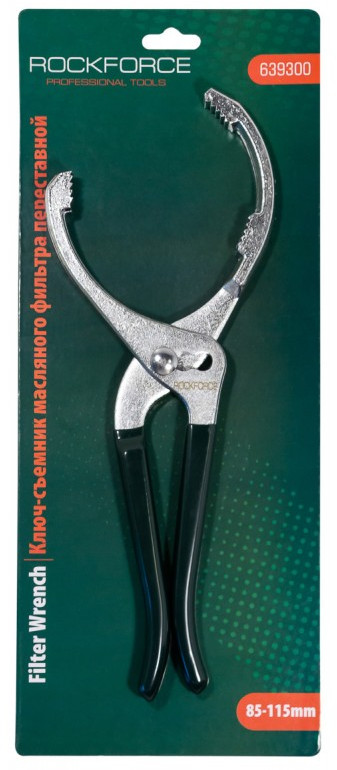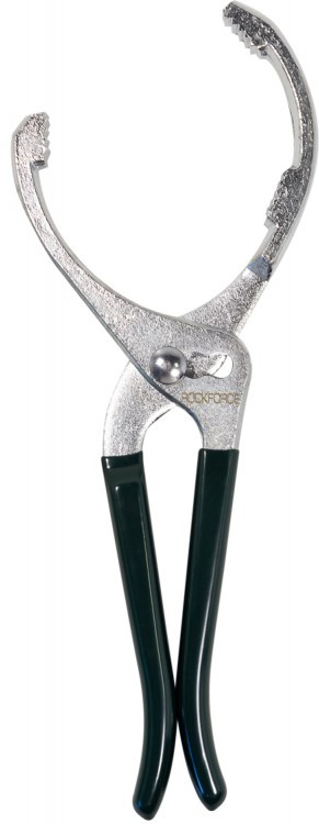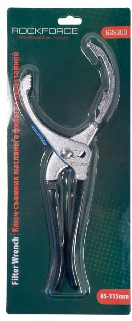 RockForce Съемник масляного фильтраВ данный момент этот товар отсутствует в продаже. Возможно, у нас найдется аналогичный или похожий товар здесь. Съемник масляного фильтра переставной, диапазон захвата фильтров диаметром от 85 до 115 мм, имеет угол наклона 20 градусов. Механизм блокировки позволяет использовать несколько позиций для надежной посадки, исключает проскальзывание. Губки имеют канавки для лучшего удерживания фильтра. Двойные рукоятки обеспечивают надежный захват. |