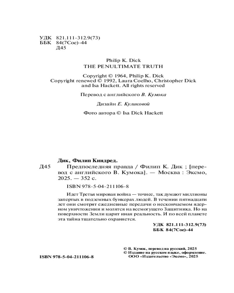 💳 Оплатить за товар можно при получении 🇰🇿 Есть бесплатная доставка по Казахстану от 1 дня 🎁 Копите бонусы с каждой покупки Серия: Филип К. Дик. Электрические сны Что бы вы сделали, обнаружив, что все ваши знания о мире — ложь? |