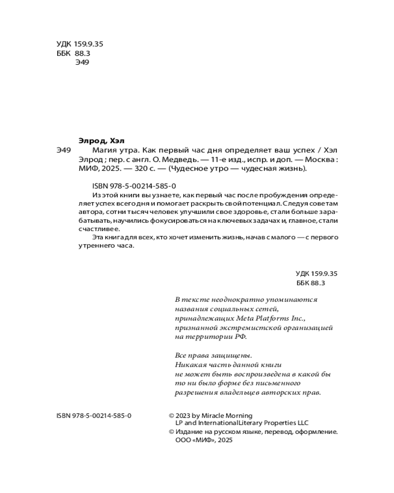 Магия утра. Как первый час дня определяет ваш успех-30% +145 изложение материала качество исполнения ясность саморазвитие