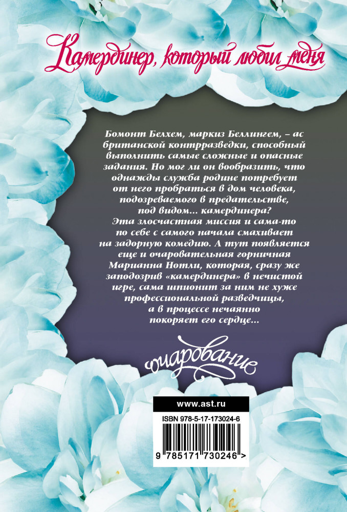 💳 Оплатить за товар можно при получении 🇰🇿 Есть бесплатная доставка по Казахстану от 1 дня 🎁 Копите бонусы с каждой покупки Серия: Очарование (мини)! Бомонт Белхем, маркиз Беллингем, — ас британской контрразведки, способный выполнить самые сложные и опасные задания. Но мог ли он вообразить, что однажды служба родине потребует от него пробраться в дом человека, подозреваемого в предательстве, под видом... камердинера? |