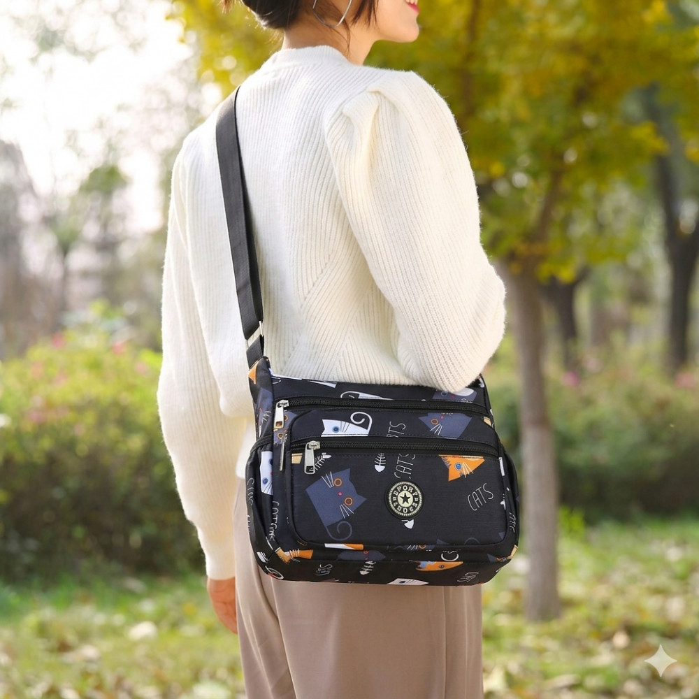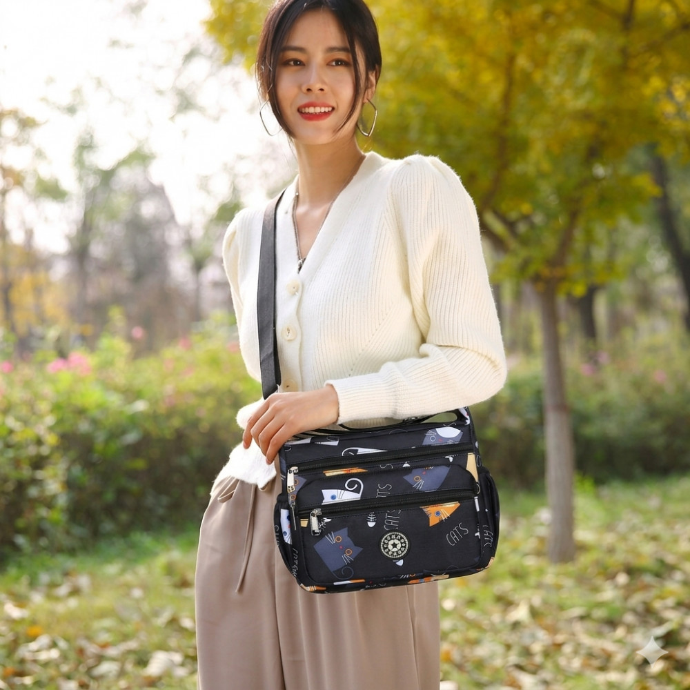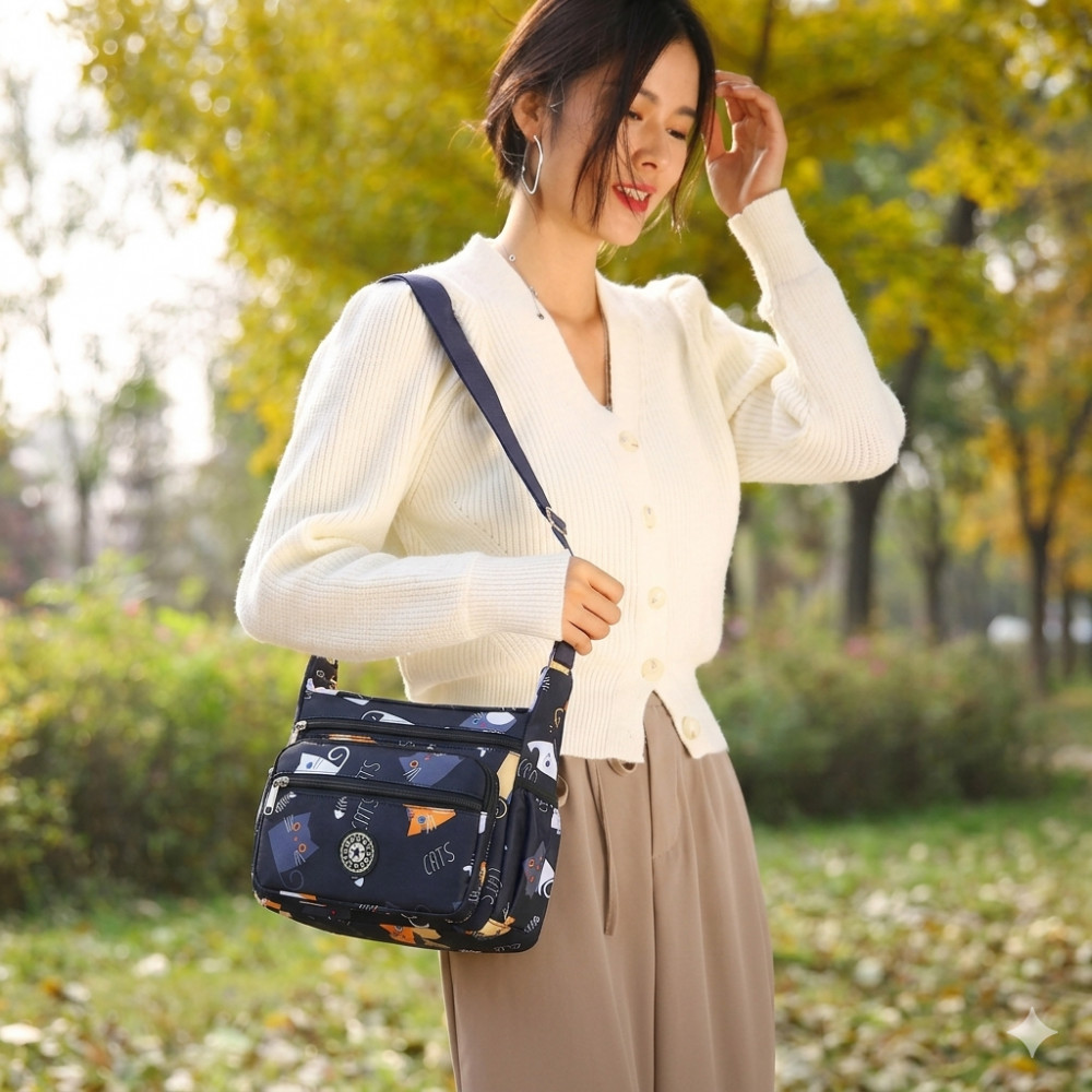 Стильная и практичная женская сумка через плечо — идеальный выбор для активных будней и путешествий! Сумка изготовлена из высококачественного мягкого нейлона и отличается легкостью и долговечностью. Водонепроницаемая ткань "оксфорд" с пропиткой защитит содержимое сумки от дождя и влаги. Легко чистится и не выцветает со временем. Несмотря на компактный вид, в сумку свободно помещаются: iPad, складной зонт, книги, косметичка и бутылка воды.