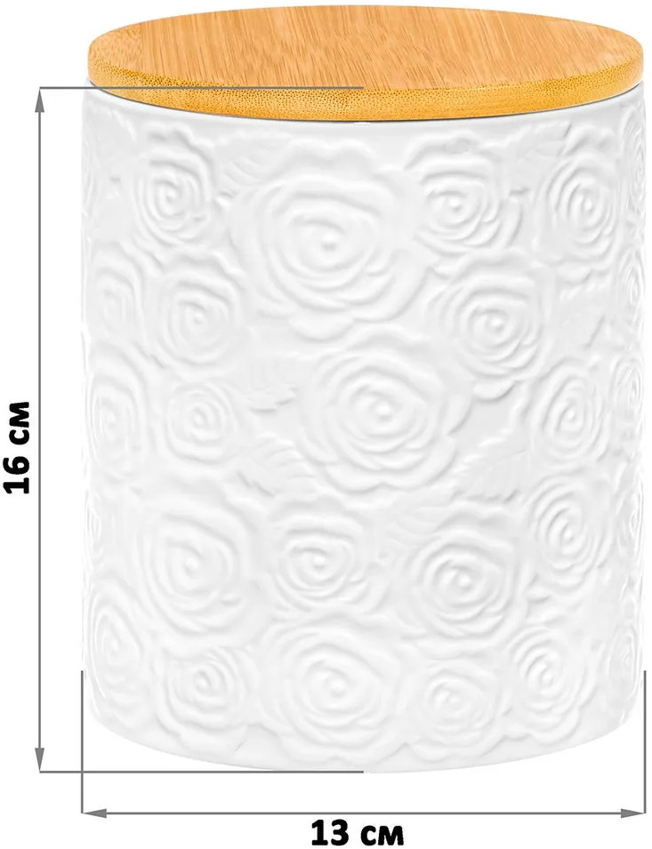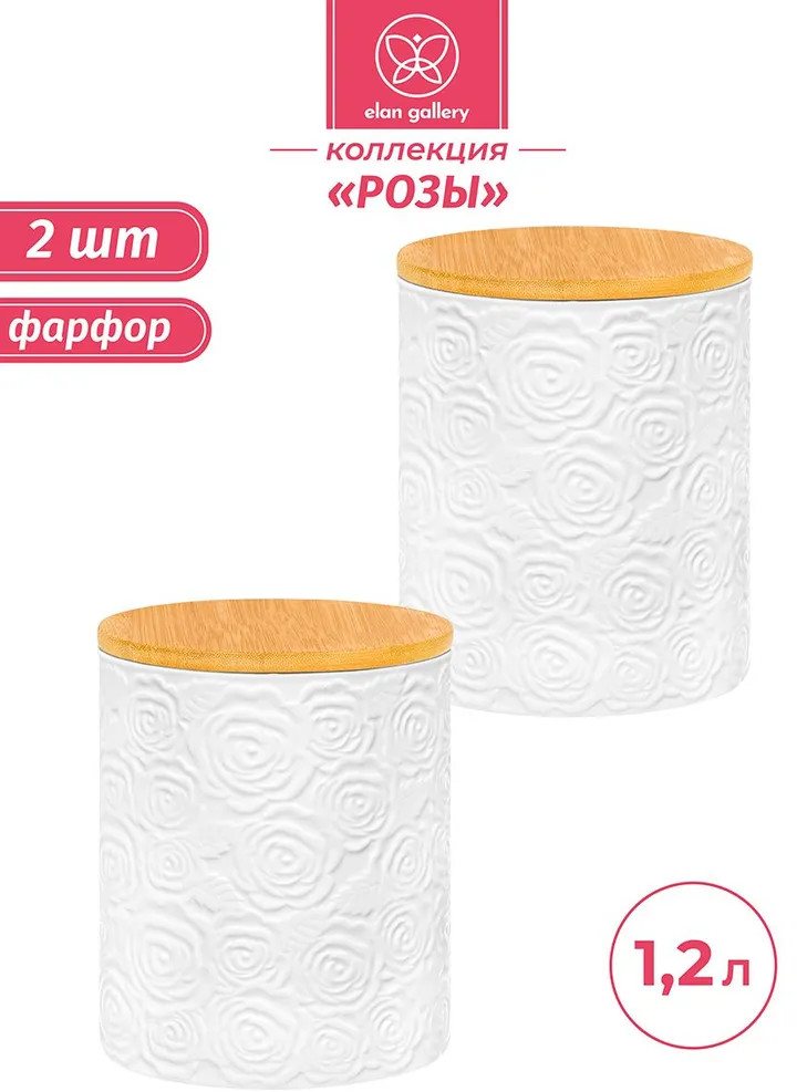 Набор 2 банок для хранения серии «Розы» объемом по 1,2 литра каждая — универсальное решение для хранения самых разных сыпучих продуктов: круп, муки, сахара, приправ, а также соли и специй. Размер каждой емкости — 13х13х16 см. Банки выполнены из высококачественного белого фарфора, украшенного декоративными рельефными узорами, которые придают изделиям элегантность и утонченность. Каждая банка имеет бамбуковую крышку с силиконовым уплотнителем. Крышечки плотно прилегают и защищают продукты от пыли и влаги. Можно использовать в роли сахарницы или для мёда, варенья и печенья. Преимущества фарфора перед керамикой очевидны: он отличается повышенной плотностью, не впитывает цвет и запах продуктов, устойчив к влаге и не подвержен деформации. Не рекомендуется применять абразивные моющие средства. Без крышек баночки можно использовать в микроволновой печи и посудомоечной машине. Бамбук нельзя замачивать! Этот набор из двух банок станет стильным и практичным дополнением к вашей кухне. Они помогут поддерживать порядок, придавая интерьеру изысканность. Кроме того, банки отлично подойдут для создания декоративных композиций или хранения сладостей, чая и кофе. Упакованы в стильные картонные коробки, что делает их прекрасным подарком на любой праздник: новоселье, день рождения, 8 Марта или любое другое семейное торжество. Благодаря красочной коробочке не понадобится дополнительная подарочная упаковка. Комплект из двух банок серии «Розы» — это выбор в пользу эстетики, порядка и удобства на вашей кухне. Порадуйте себя и близких качественной посудой, которая прослужит долгие годы!
