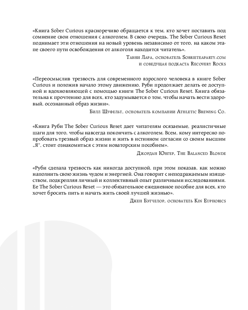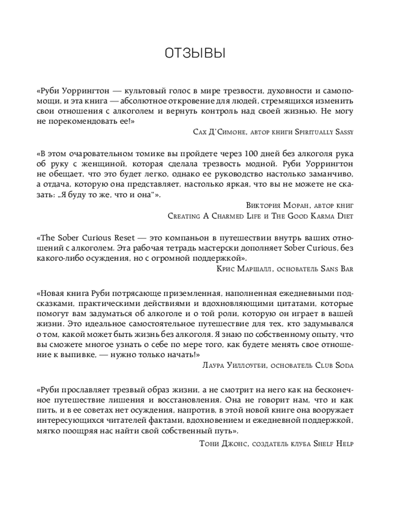 💳 Оплатить за товар можно при получении 🇰🇿 Есть бесплатная доставка по Казахстану от 1 дня 🎁 Копите бонусы с каждой покупки Серия: БЕЗвредные привычки. Лучшие книги по избавлению от зависимостей Популяризатор трезвого и осознанного образа жизни Руби Уоррингтон предлагает совершить путешествие, которое поможет кардинально перестроить ваши отношения с алкоголем и испытать все невероятные преимущества трезвого образа жизни. При помощи вопросов, идей и наблюдений, предложенных автором, в течение 100 дней вы будете формировать новый взгляд на спиртное и закреплять полученные знания на практике благодаря специальным упражнениям. |