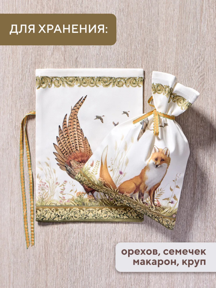 Santalino Набор мешочков для храненияВ данный момент этот товар отсутствует в продаже. Возможно, у нас найдется аналогичный или похожий товар здесь. Серия: Охота Мешочки выполнены из высококачественного и гиппоаллергенного материала — 100 % хлопка с саржевым переплетением Твил. Это идеальное решение для тех, кто ценит простоту и натуральность. Для нанесения принта используется качественная цифровая печать. При таком методе нанесения красок на ткань рисунок не линяет и не теряет своей яркости даже после 100 стирок (при соблюдении условий ухода). На мешочках нарисована лиса, каждый штрих детально приросован во всём многообразии оттенков, которые придают им особый шарм. Удобный размер позволяет использовать их для разных целей: от упаковки подарков и сувениров, до хранения мелочей, аксессуаров, бижутерии и карт таро. Например, на кухне использовать для хранения трав и чая, орехов, круп и бобов, ягод и сухофруктов, семечек и прочих продуктов бакалеи. Мешочки имеют удобное шнурочное закрытие, которое позволяет легко и быстро упаковать и распаковать содержимое. Текстильные экомешочки предназначены для многократного использования и при бережном уходе прослужит не один год. |