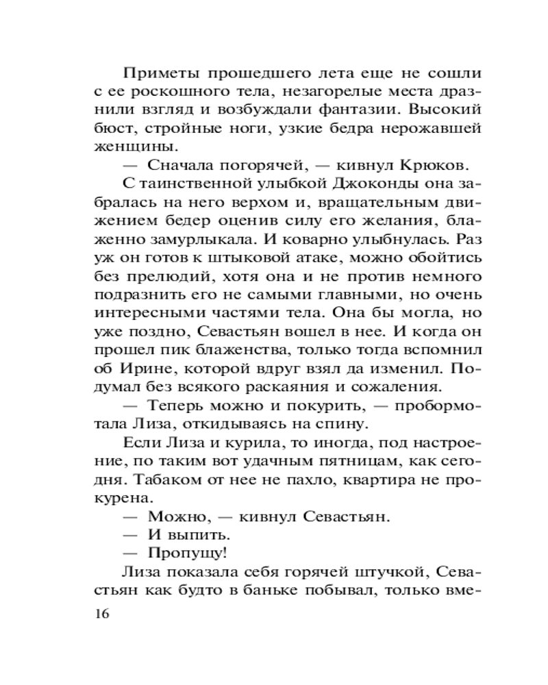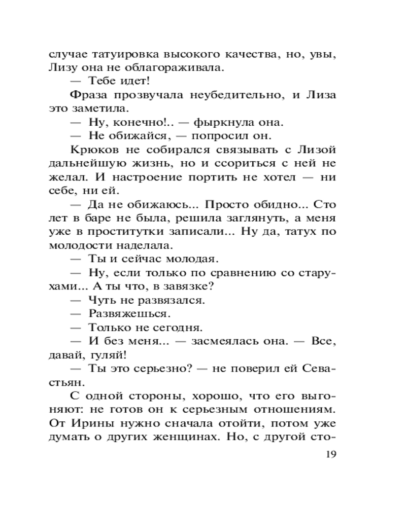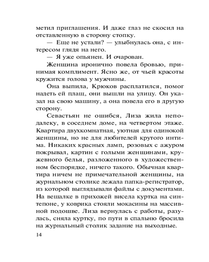 💳 Оплатить за товар можно при получении 🇰🇿 Есть бесплатная доставка по Казахстану от 1 дня 🎁 Копите бонусы с каждой покупки Серия: Колычев. Лучшая криминальная драма (обложка) Капитан полиции Севастьян Крюков — личность в Старозаводске известная. Гроза бандитов и поклонник алкоголя, не брезгует он и мелкими любовными интрижками. Одна из них закончилась трагически: после ухода Крюкова несчастную женщину нашли зверски задушенной, с вырванными из ушей сережками. Спустя некоторое время таким же образом погибли еще три женщины. И каждый раз незадолго до смерти все они имели отношения с Севастьяном. Следователь Илья Милованов не сомневается: распутный капитан имеет прямое отношение к кровавой серии. В своих выводах сыщик не допускает и мысли, что настоящий убийца — совсем иной человек... |