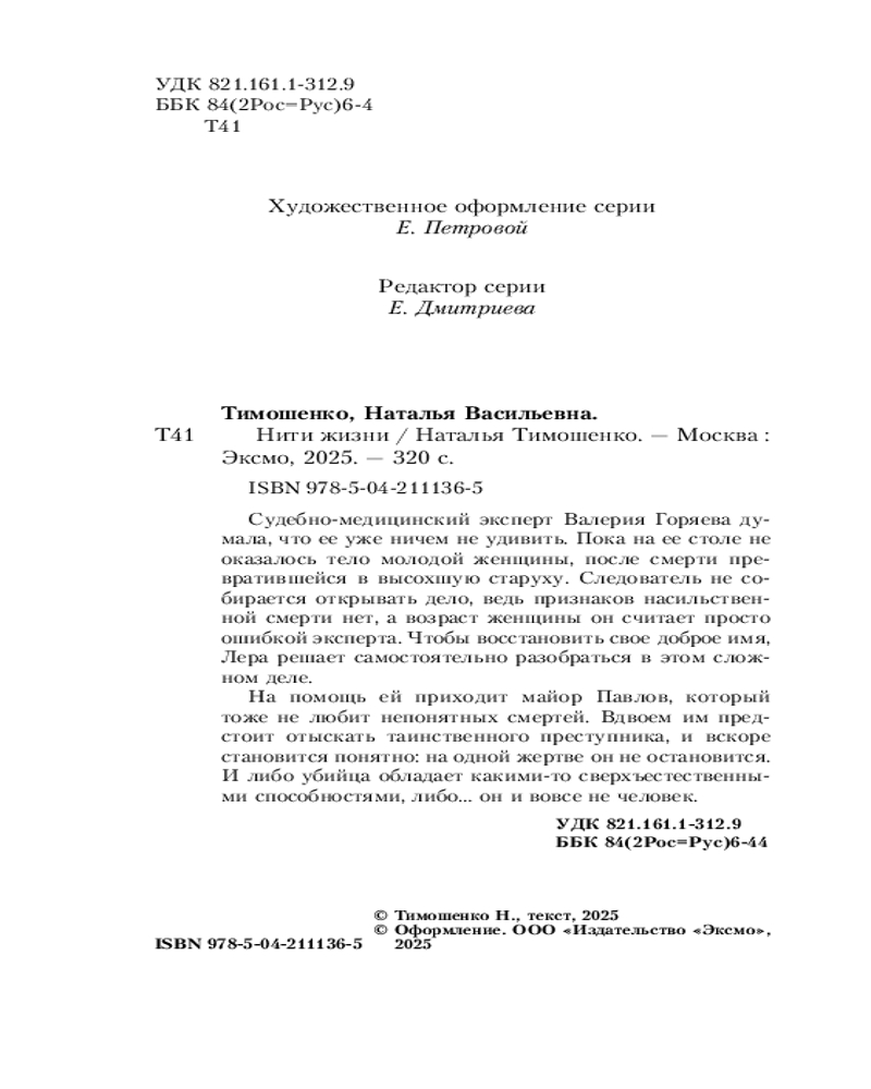 💳 Оплатить за товар можно при получении 🇰🇿 Есть бесплатная доставка по Казахстану от 1 дня 🎁 Копите бонусы с каждой покупки Серия: Мистические романы Натальи Тимошенко (обложка) Переиздание от мастера мистического детектива Натальи Тимошенко. Захватывающая история, которая будет держать вас в напряжении от первой до последней страницы. |