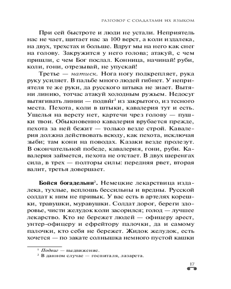 💳 Оплатить за товар можно при получении 🇰🇿 Есть бесплатная доставка по Казахстану от 1 дня 🎁 Копите бонусы с каждой покупки Серия: Книги, о которых говорят Александр Васильевич Суворов — выдающийся русский полководец XVIII века, известный своими блестящими военными кампаниями и новаторскими тактическими приемами. Книга Суворова «Наука побеждать» — это сборник военно-теоретических записок и практических советов по ведению боя, которые он составил на основе собственного боевого опыта. |