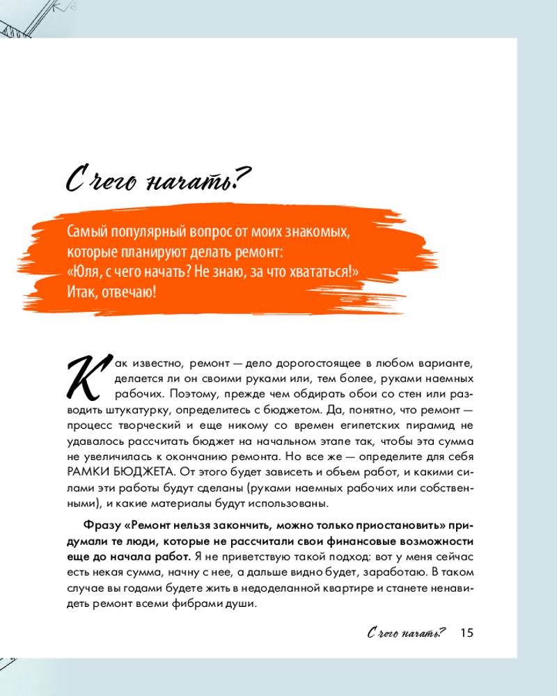 • как планировать и организовать ремонт, чтобы избежать неожиданных трат и задержек;