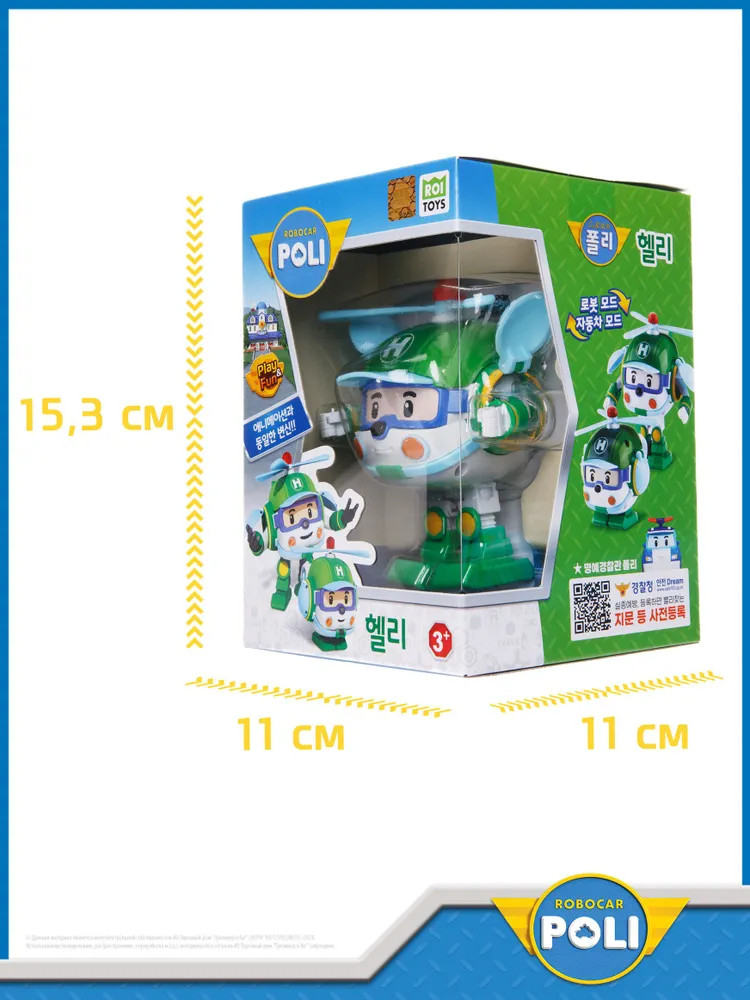 💳 Оплатить за товар можно при получении 🇰🇿 Есть бесплатная доставка по Казахстану от 1 дня 🎁 Копите бонусы с каждой покупки Трансформер-вертолёт Хели 10 см — один из главных героев команды спасателей Робокар Поли. Как и герой мультика Хели может трансформироваться из робота в спасательный вертолёт. Трансформация игрушки происходит за несколько простых движений, из робота превращается в вертолёт с глазками на лобовом стекле и крутящимся пропеллером. Несложная трансформация станет прекрасной тренировкой для мелкой моторики рук и фантазии. Корпус игрушки выполнен из пластика высокого качества. Вертолёт окрашен стойкими красителями, которые абсолютно безопасны для детей и долгое время сохраняют яркость. Миссия отряда спасателей Poli Robocar — делать мир лучше. Главный герой — робокар Поли (полицейский автомобиль), всегда быстро находит решение любой проблемы, и поэтому именно он возглавляет спасательную команду. В эту команду также входят роботрак Рой (пожарная машина), робовэн Эмбер (машина скорой медицинской помощи) и робокоптер Хэли (спасательный вертолёт). |