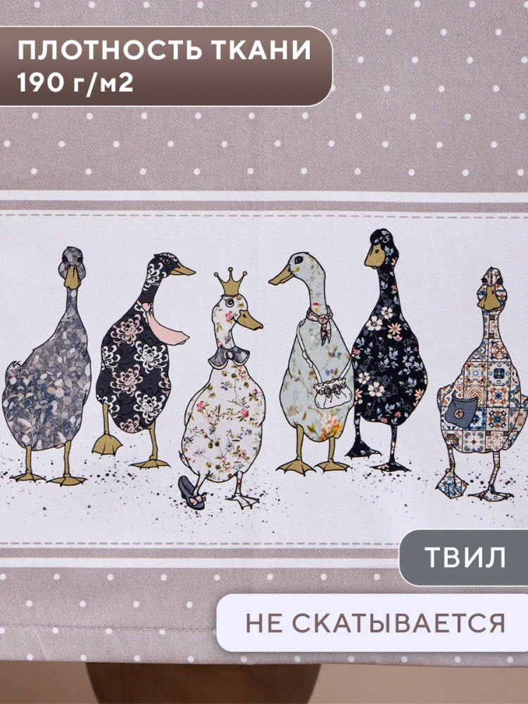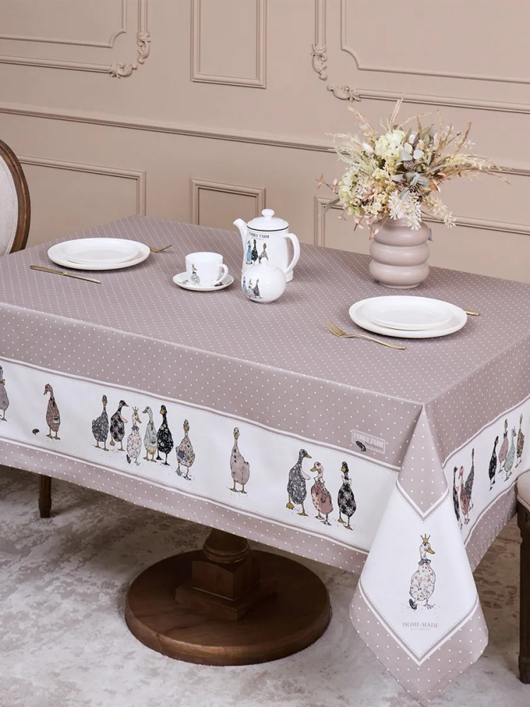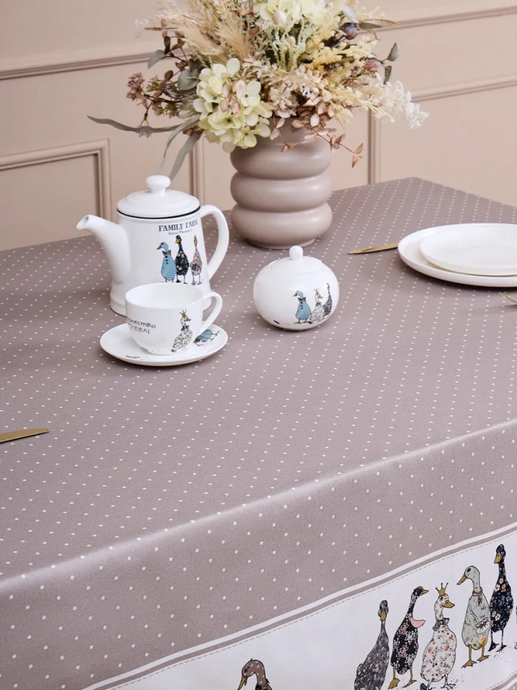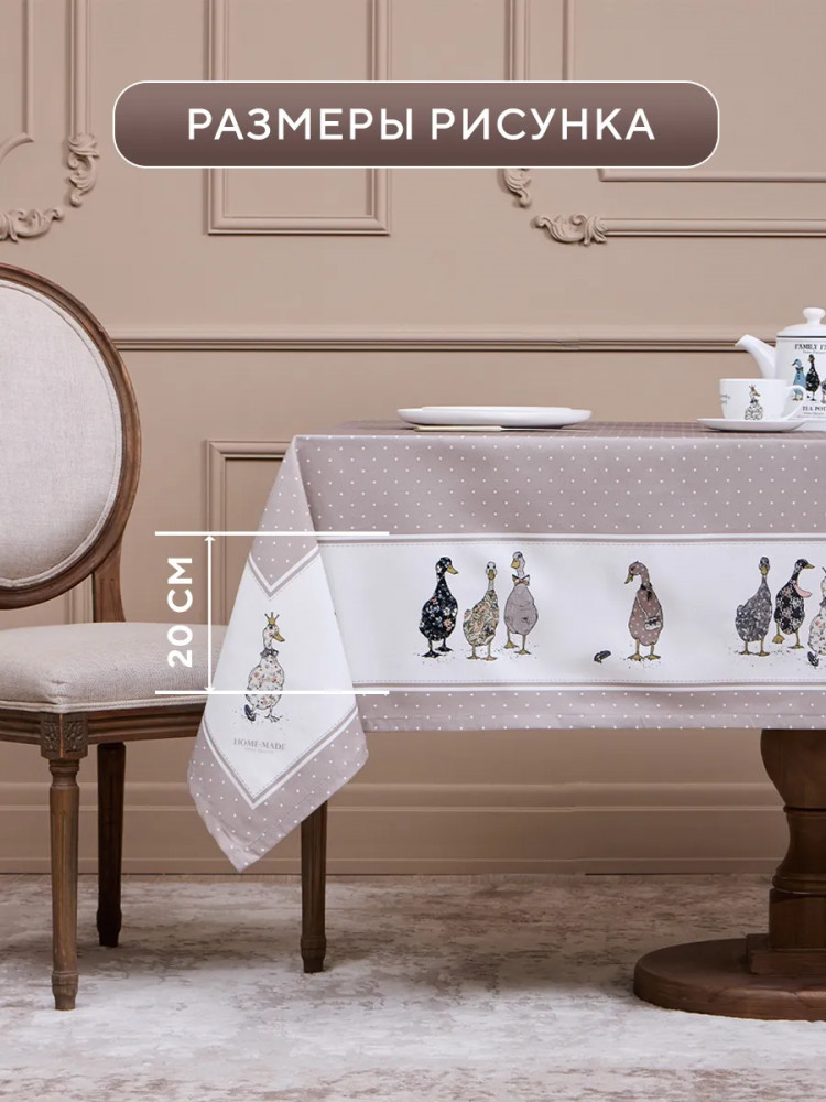 Водонепроницаемая скатерть легка в уходе, она не впитывает мгновенно жидкость на обеденном столе и избавит вас от хлопот с отстирыванием пятен после застолья. Она легко моется и сохраняет свою текстуру и цвет даже после многих стирок. Такая скатерть станет отличным дополнением к интерьеру вашей кухни. Тканевая скатерть в горошек, украшенная ярким и забавным принтом с гусями, создаст летнюю атмосферу в вашем доме или на даче. Эта водостойкая скатерть придется по вкусу всем ценителям красивого текстиля. Она будет ярким акцентом вашего кухонного стола.