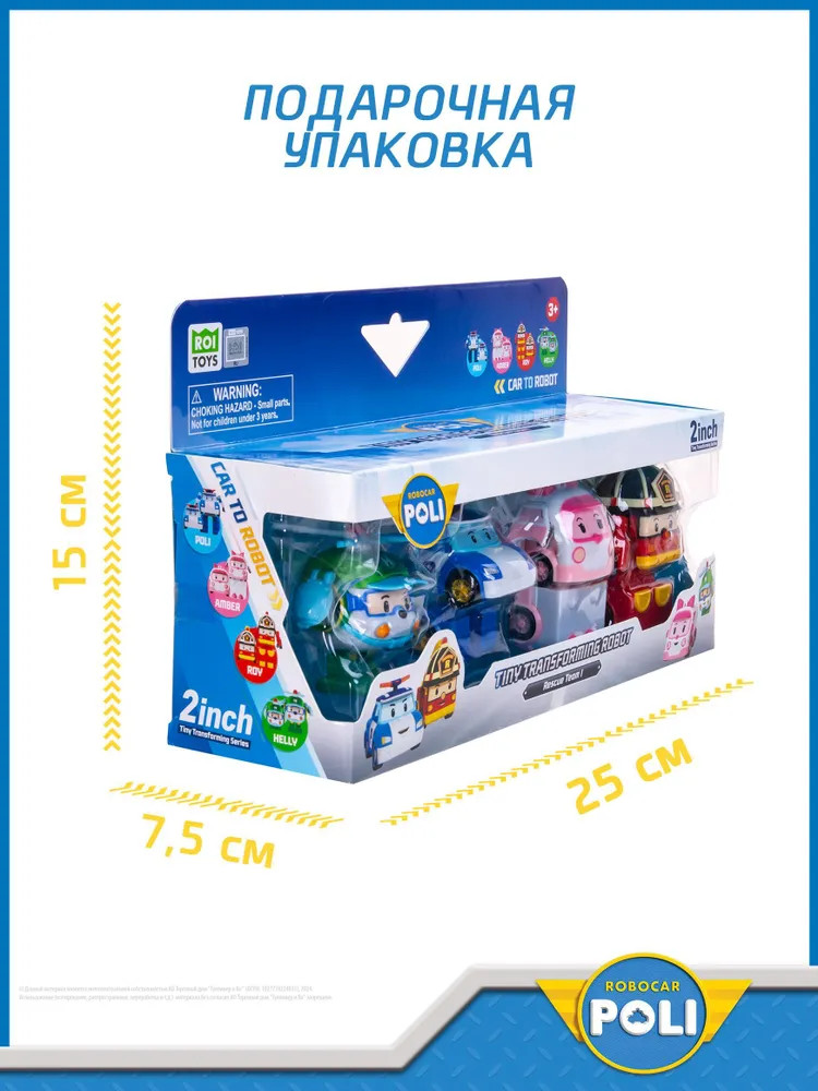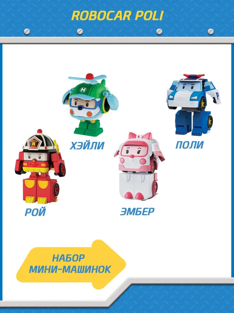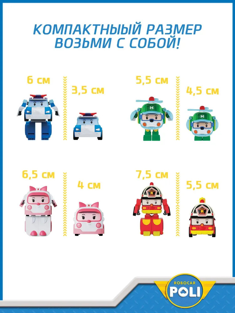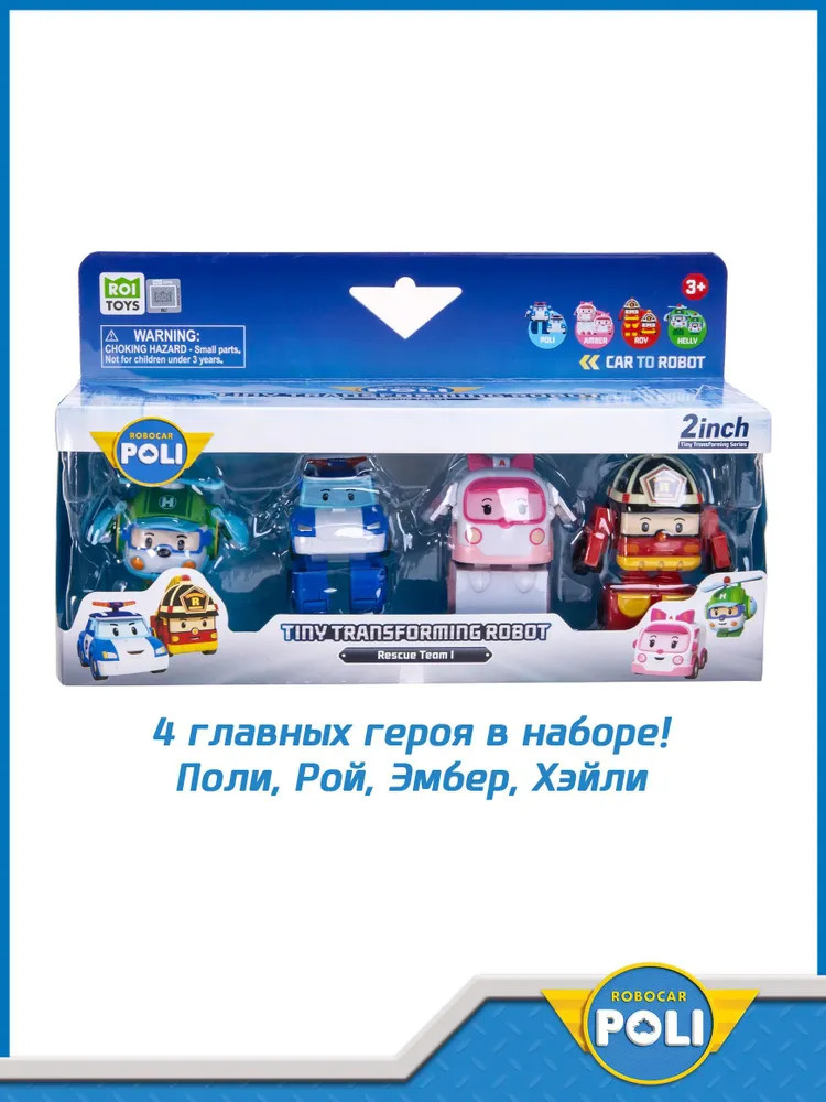Robocar Poli Набор мини-трансформеровВ данный момент этот товар отсутствует в продаже. Возможно, у нас найдется аналогичный или похожий товар здесь. Исследуйте мир с набором Мини-трансформеров Robocar Poli! В одной упаковке 4 главных героя мультфильма: Поли, Рой, Эмбер, Хэлли. Эти маленькие герои из мультфильма Робокар Поли обязательно станут любимчиком вашего ребёнка. Очаровательная мини версия большого робота идеально подходит для малышей. Это не просто игрушка, а целый мир приключений в небольших размерах! Главная особенность игрушки заключается в её способности легко и быстро трансформироваться. Благодаря продуманной конструкции, процесс превращения робота в вертолётик всего за несколько простых шагов будет лёгким и увлекательным занятием даже для самых маленьких ручек. Robocar Поли — это игрушка для развития моторики и фантазии ребёнка. Малыш сможет самостоятельно придумывать захватывающие истории и играть. Каждый день может стать новым приключением вместе с надёжными друзьями на колёсах! Игра развивает способности решения задач и понимание простых механизмов. Коллекция мини-трансформеров — героев мультфильма Robocar Poli в одном наборе! |